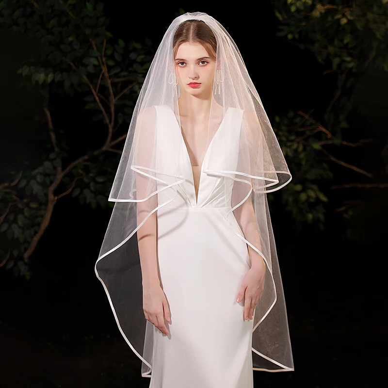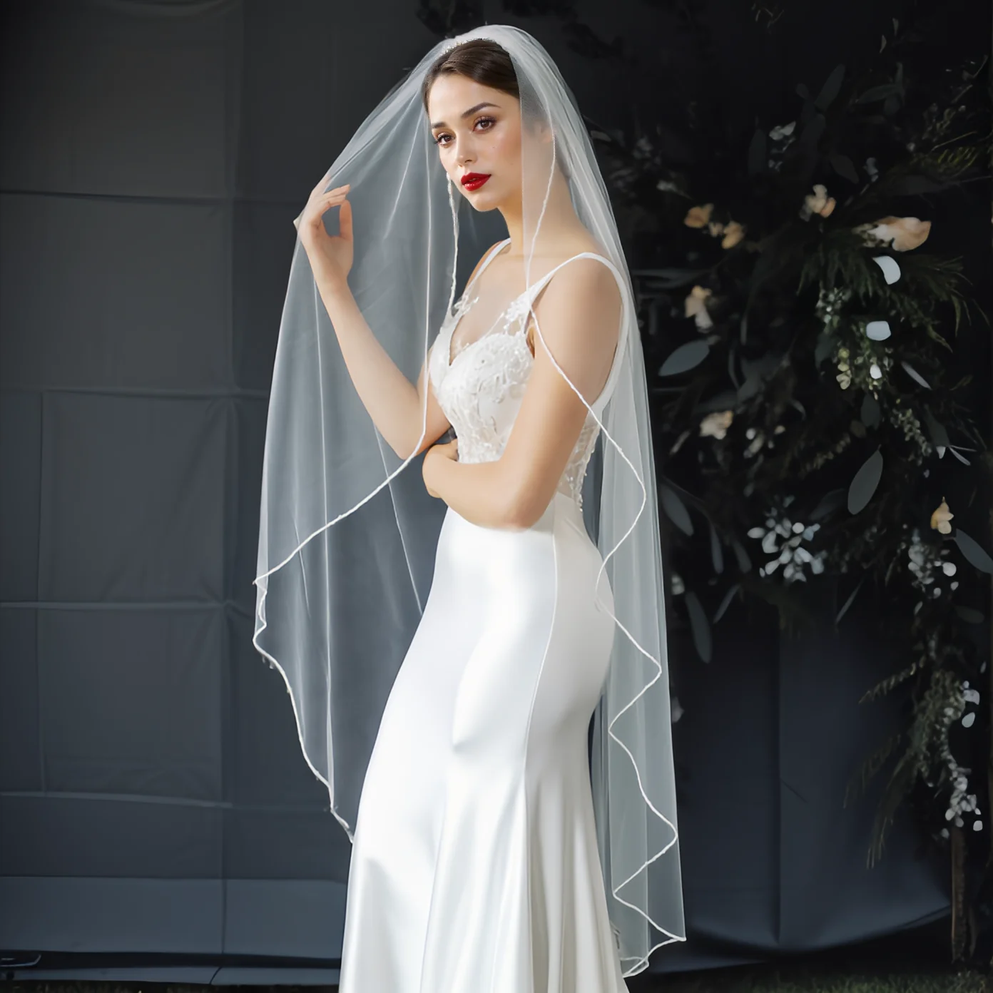 진주 신부 베일 소프트 1 계층 신부를위한 파란색 웨딩 베일 빗 웨딩 액세서리와 대성당 길이