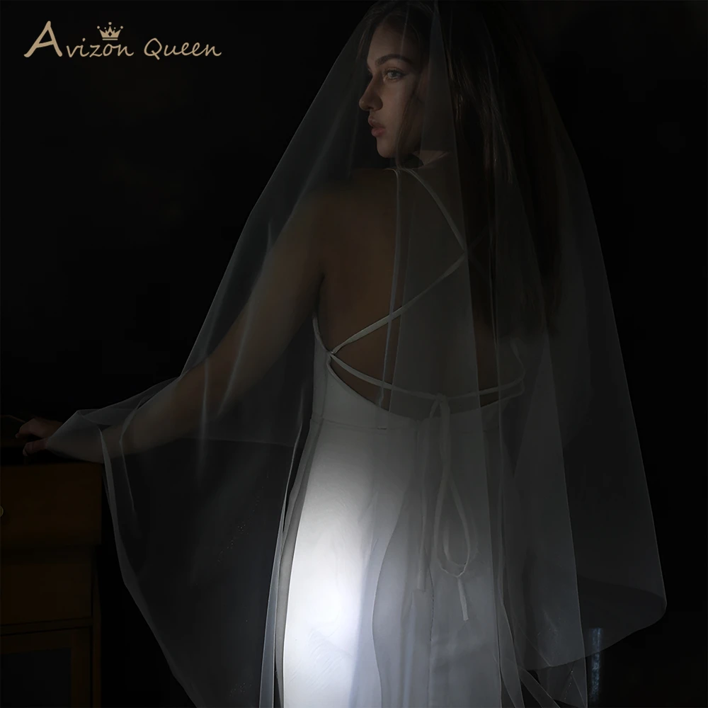 간단한 일반 신부 베일 성당 웨딩 액세서리, 부드러운 얇은 명주 그물 벨로 드 노비아 블랑코 웨딩 베일 2024