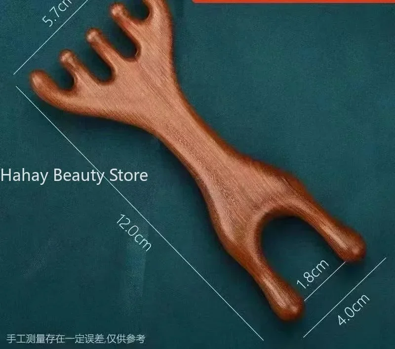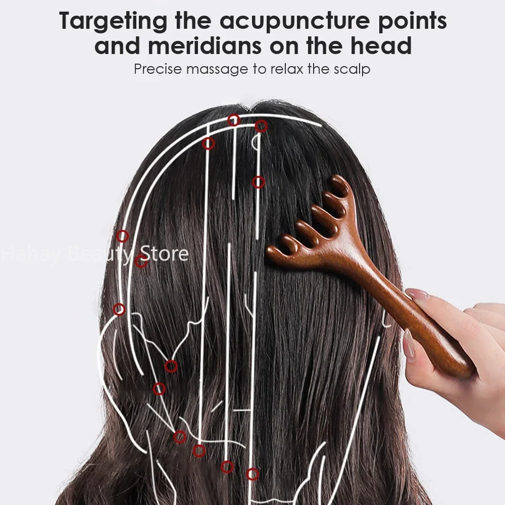 나무 자오선 마사지 빗, 정전기 방지, 6 클로 헤드 마사지기, 혈액 순환 촉진, 바디 구아샤 도구, 헤드 마사지 브러시
