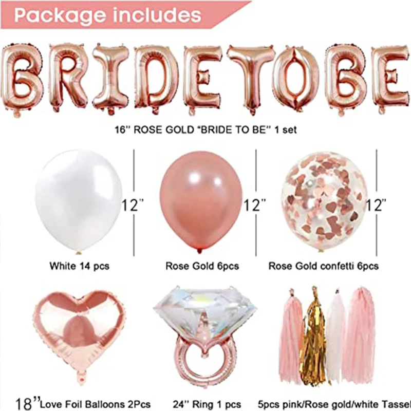 독신 파티 장식 키트 로즈 골드 신부 샤워 파티 장식과 신부, 신부 샤워 풍선 용품