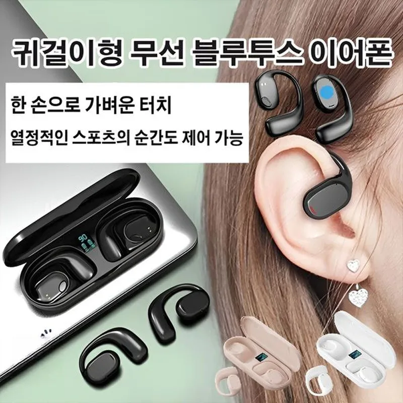 [무손 음질] 귀걸이형 무선 블루투스 이어폰 골전도 이어폰 듀얼 채널 5.3 블루투스/HiFi 스테레오/안정적이고 빠르고 고성능