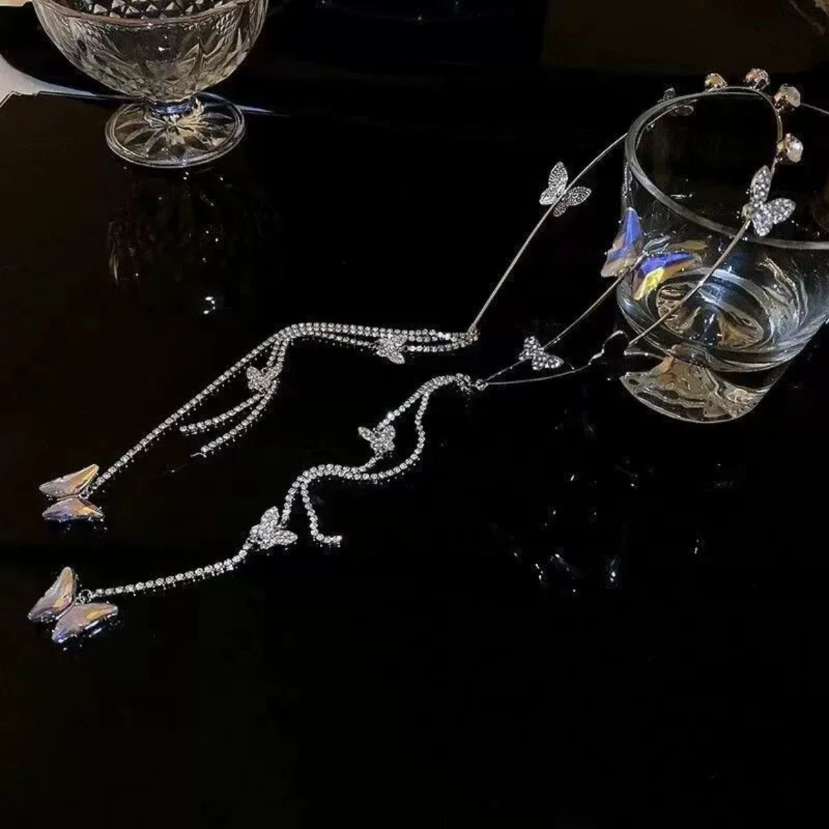반짝이 소녀 헤어 후프 한국 스타일 빛나는 라인 석 머리띠 나비 술 머리핀 절묘한 보석 헤어 액세서리