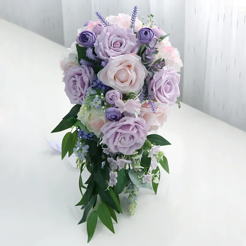 빈티지 샴페인 꽃다발 폭포 웨딩 신부 들러리 손 묶여 인공 꽃 축제 파티 홈 크리스마스 장식