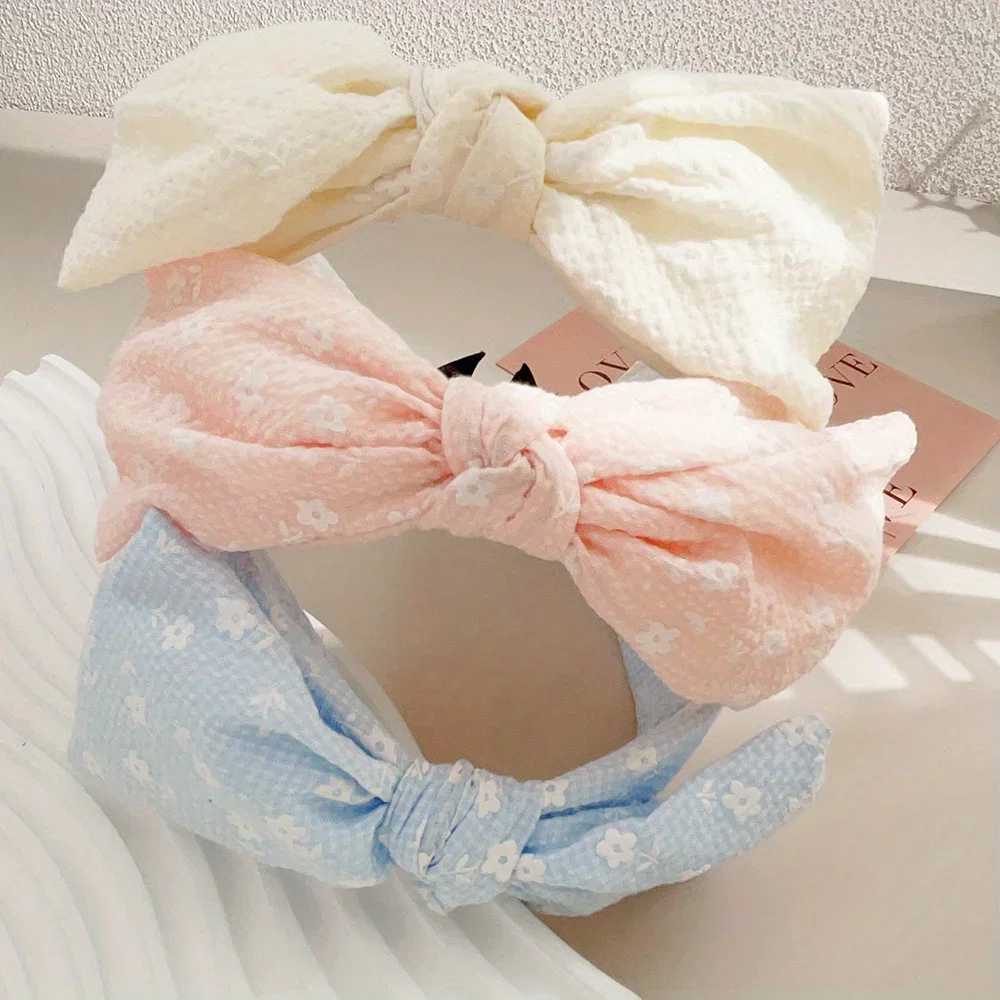 새로운 2025 헤어 스타일링 액세서리 여성용 작은 꽃 헤어 밴드 소녀 소프트 와이드 농구 큰 Bowknot 크로스 머리띠 여름 선물