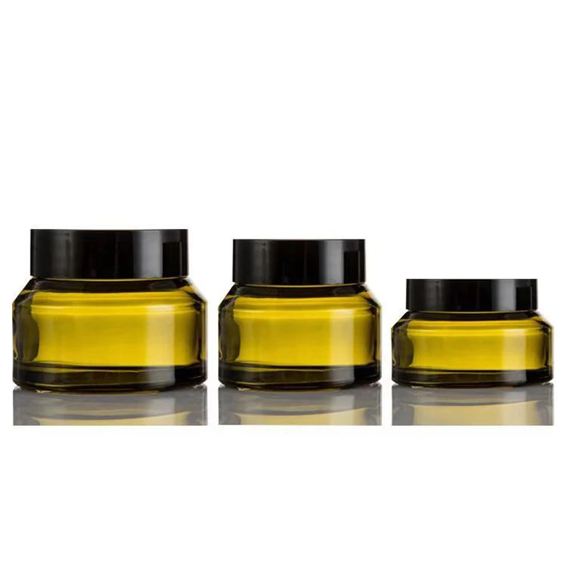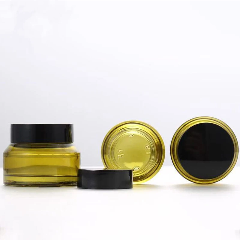 15g 30g 50g 유리 항아리 호박색 녹색 유리 크림 항아리 화장품 화장품 포장 블랙 캡
