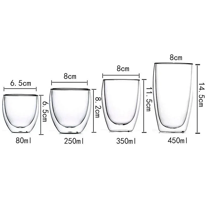 이중 벽 높은 붕규산염 유리 머그잔, 내열성 차 우유 주스 커피 물컵 바 음료용기 선물, 창의력 세트, 2-18 개
