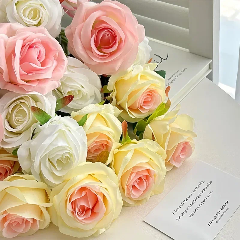 각 장미는 길이 약 52cm, 머리 지름 9cm, 실크 장미 꽃은 방금 자른 것처럼 약간 피었습니다.