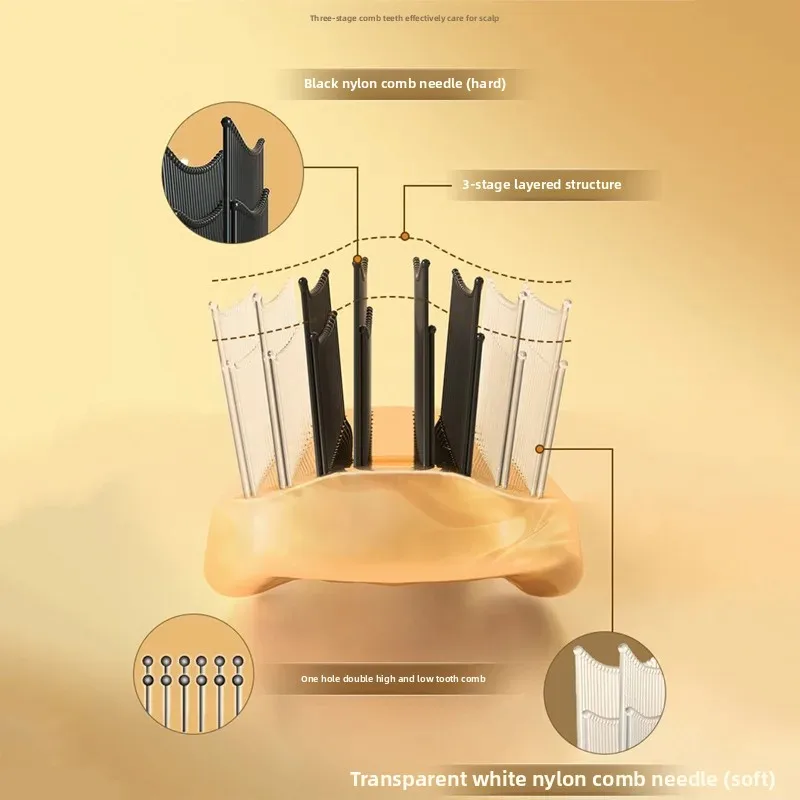 4. 엉킨 머리카락을 풀기 부드럽고 광택이 나는 둥근 끝의 금속 핀을 사용하면 더 적은 걸림과 당김으로 머리카락의 엉킴과 매듭을 제거할 수 있으며 머리카락을 부드럽고 매끄럽고 윤기나게 보이게 할 수 있습니다.