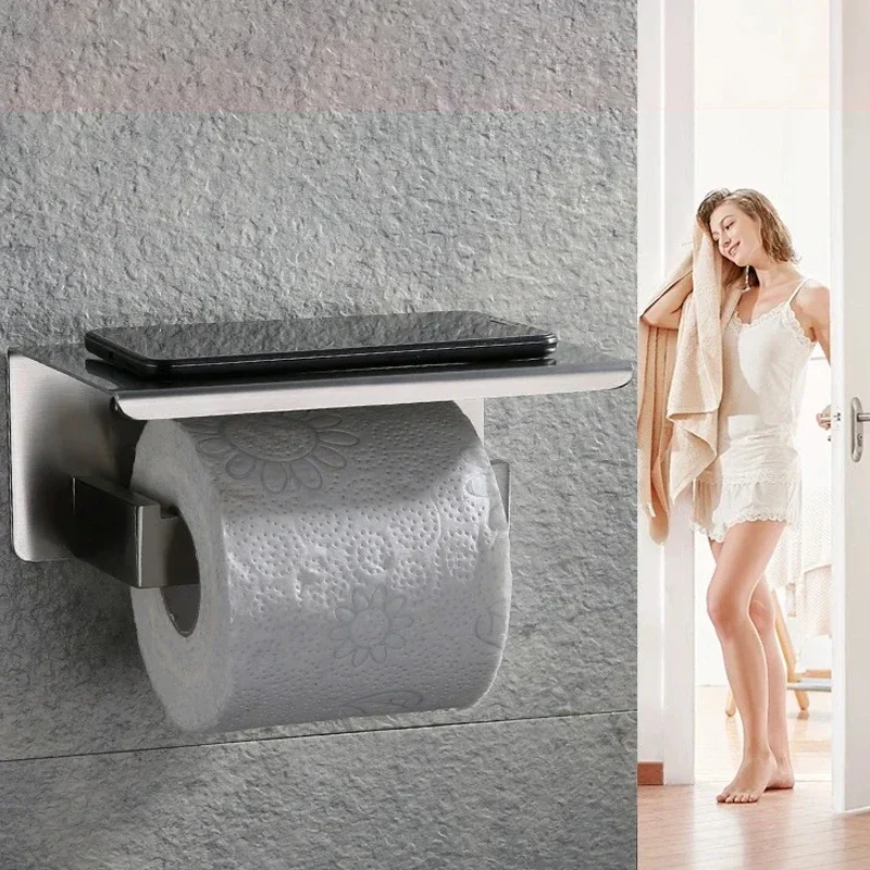 전화 선반이있는 스테인레스 스틸 화장지 홀더 욕실 티슈 홀더 가정용 종이 홀더 용 화장지 롤 홀더