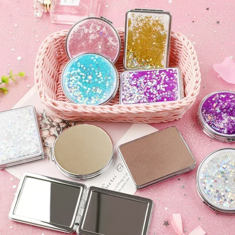퀵샌드 메이크업 라운드 미러, 귀여운 소녀 만화 양면 미러, 휴대용 메이크업 미러, 홈 데코 액세서리