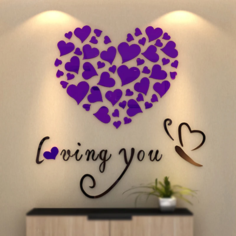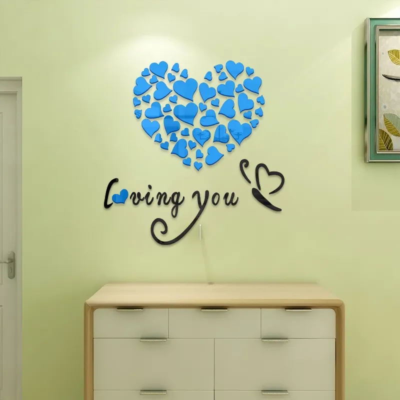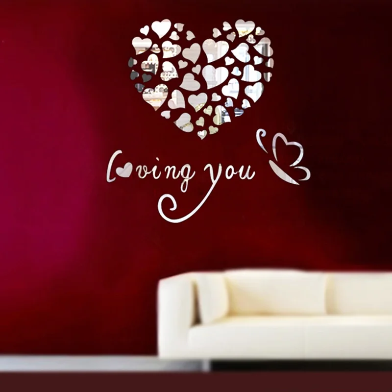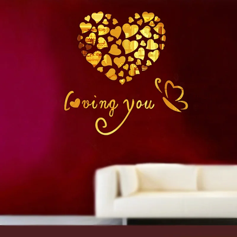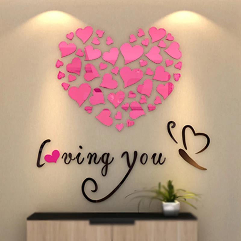 1 세트 사랑 심장 아크릴 벽 스티커 DIY 3D 거울 벽 스티커 거실 침실 배경 벽 웨딩 장식