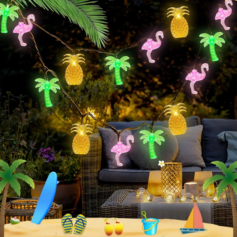 1.5M 10LED 플라밍고 파인애플 문자열 빛 여름 열대 하와이 파티 장식 야자수 요정 빛 갈 랜드 해변 결혼식