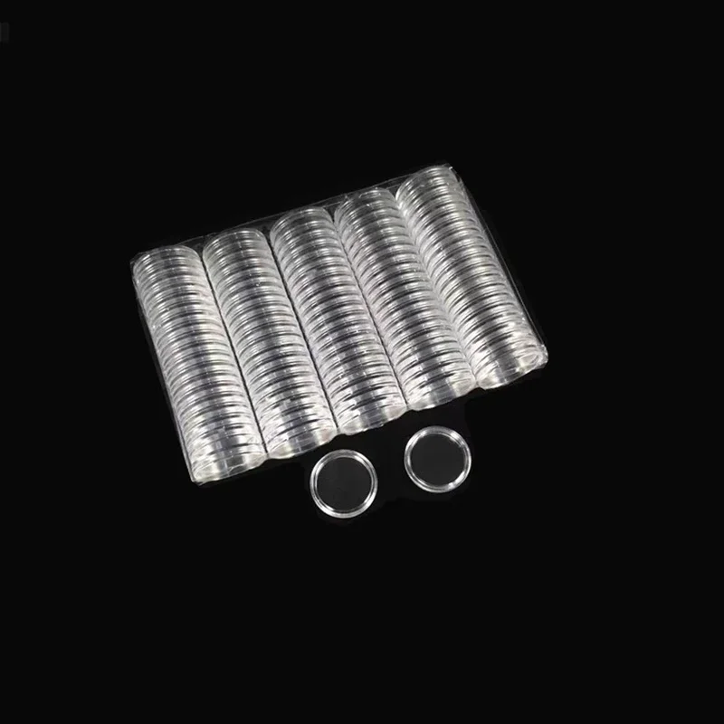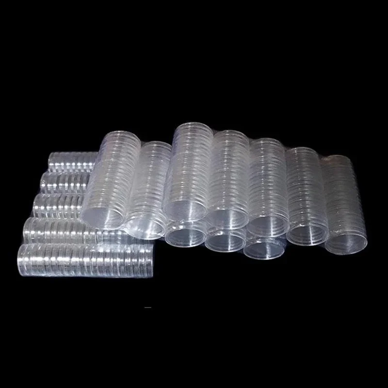 100pcs 창고 번들 16-46mm 투명 플라스틱 동전 홀더 디스플레이 캡슐 컬렉션 케이스 라운드 링 보호 상자