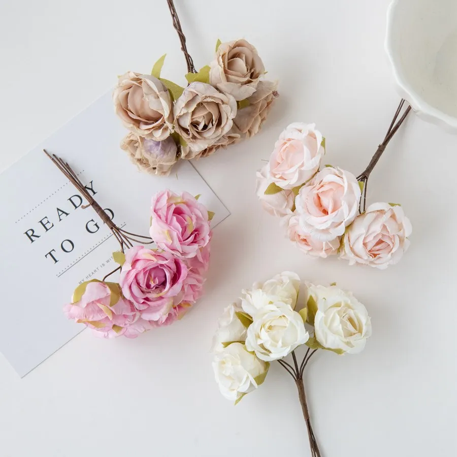 12Pcs 인공 꽃 실크 차 로즈 웨딩 부케 화환 Scrapbooking 홈 크리스마스 장식 Diy 휴일 액세서리