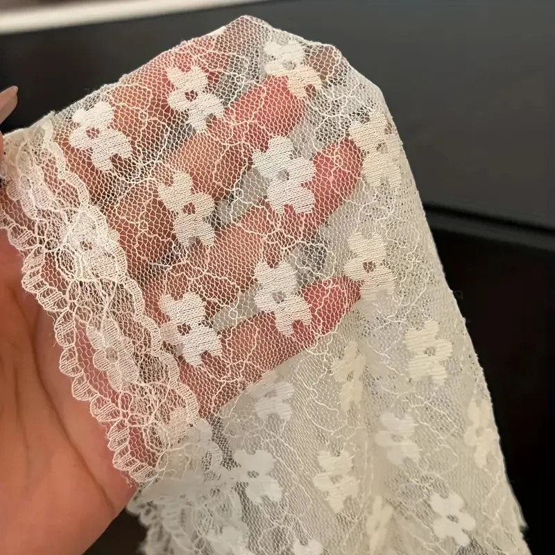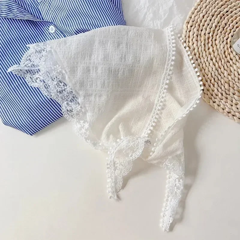2025 프랑스 컨트리 스타일 레이스 메쉬 삼각 스카프 봄 여름 플로럴 헤어 스카프 우아한 헤드랩 보헤미안 헤어 액세서리