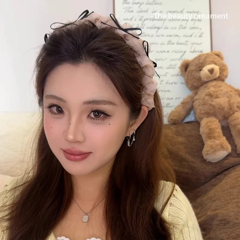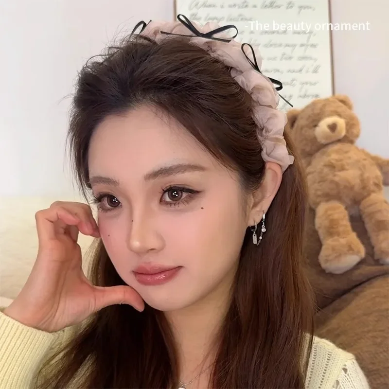 2025 한국 발레 헤드밴드: 새틴 리본 & 튤 보우 와이드 헤드밴드 (니트 그립 – 미끄럼 방지 크라운 리프트)