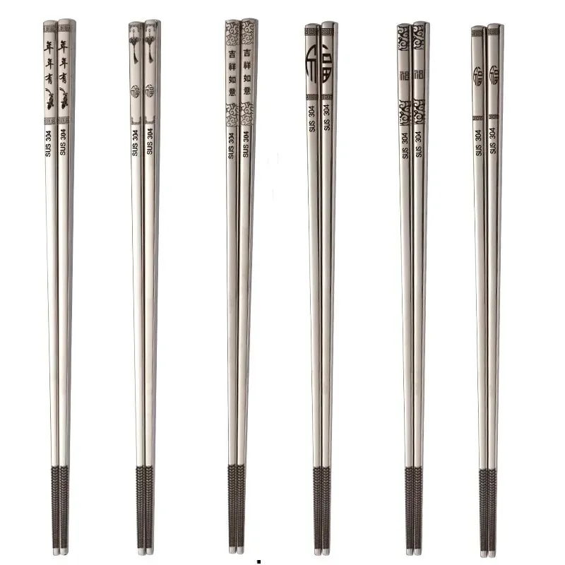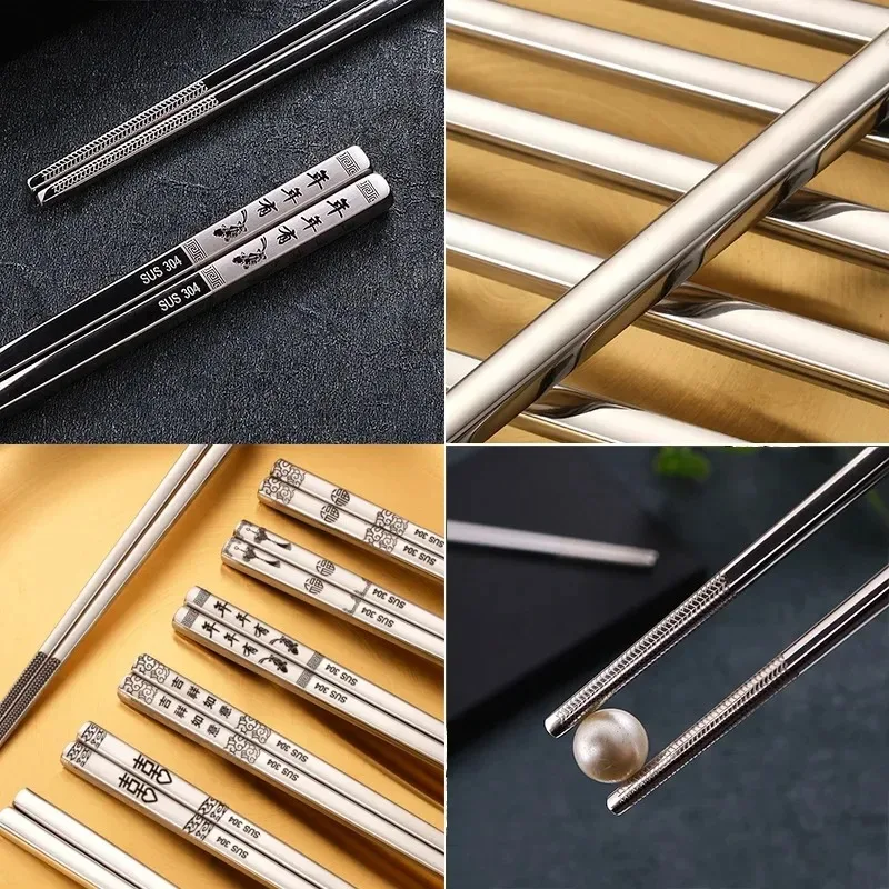 23CM 스테인레스 스틸 젓가락 미끄럼 방지 중국 젓가락 홈 금속 젓가락 음식 스시 스틱 주방 식기