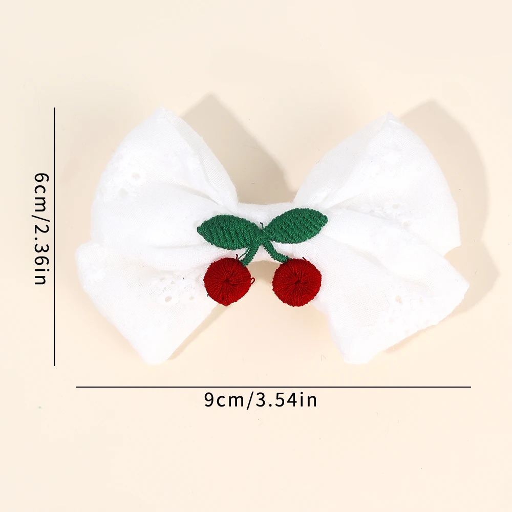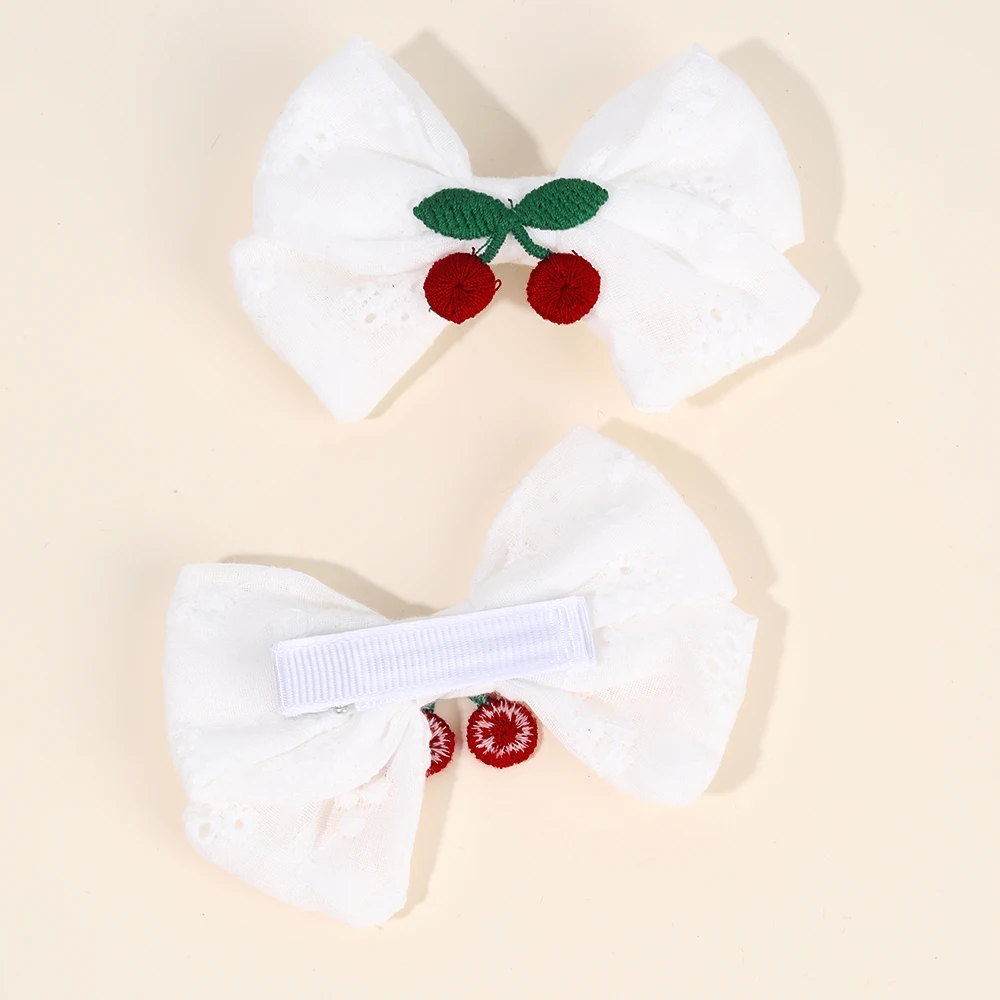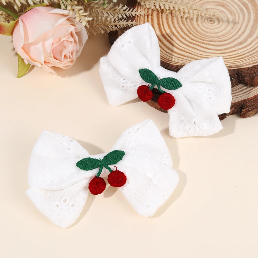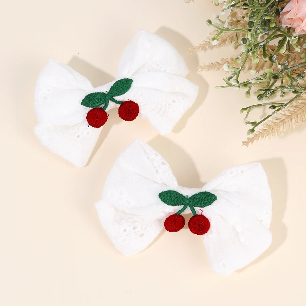 2Pcs Kawaii 흰색 체리 활 헤어 클립 여자를위한 꽃 자수 머리핀 어린이 일일 헤어핀 머리 장식 헤어 액세서리