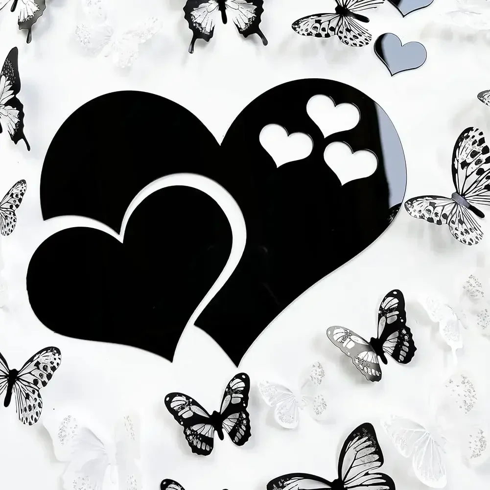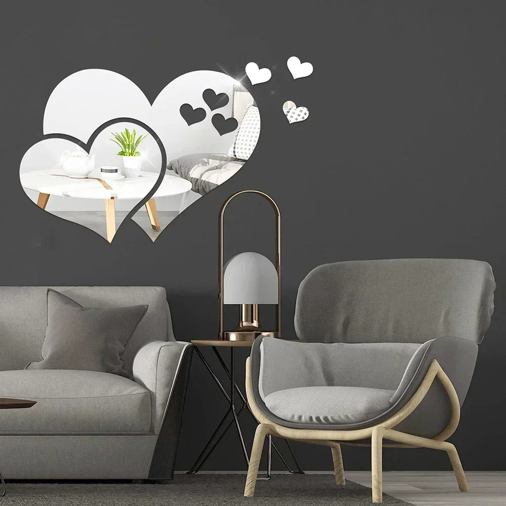 3D 유리 거울 벽 스티커 하트 패션 DIY 데칼 자기 접착 사랑 웨딩 배경 홈 룸 장식 바탕 화면
