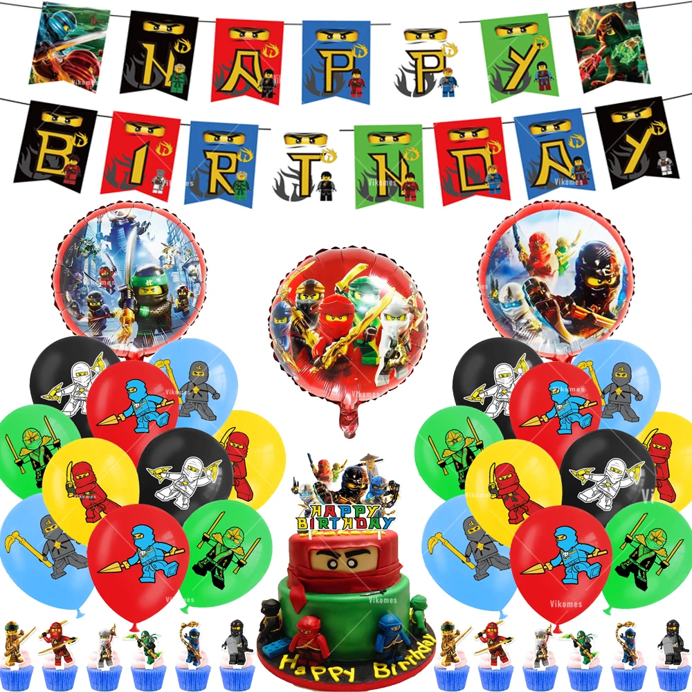 Ninjaed Go 테마 풍선 생일 파티 장식 용품 베이비 샤워 Legoed 라텍스 Ballon 배경 배너 케이크 토퍼 소년