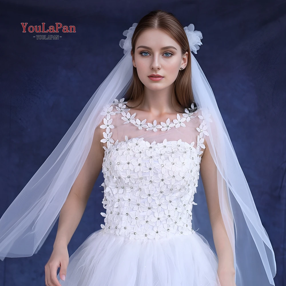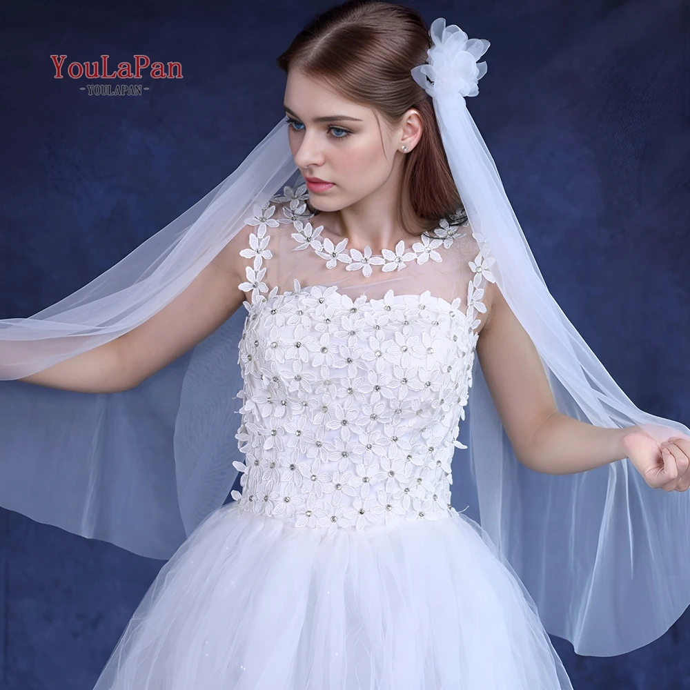 TOPQUEEN 심플 레트로 스타일 신부 베일 2 피스 리본 빗 웨딩 액세서리 Velos De Novia Flores