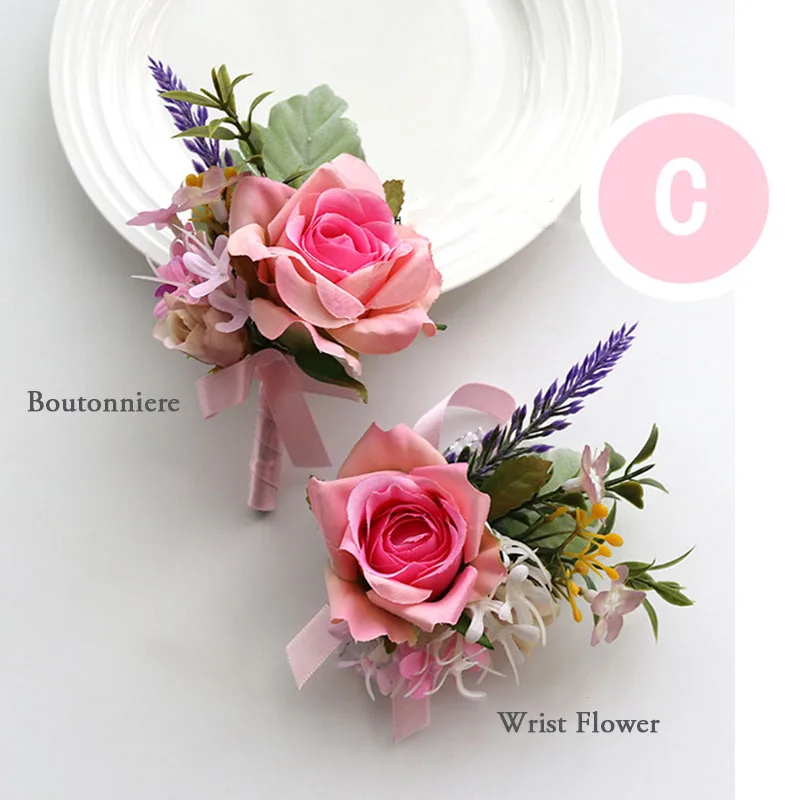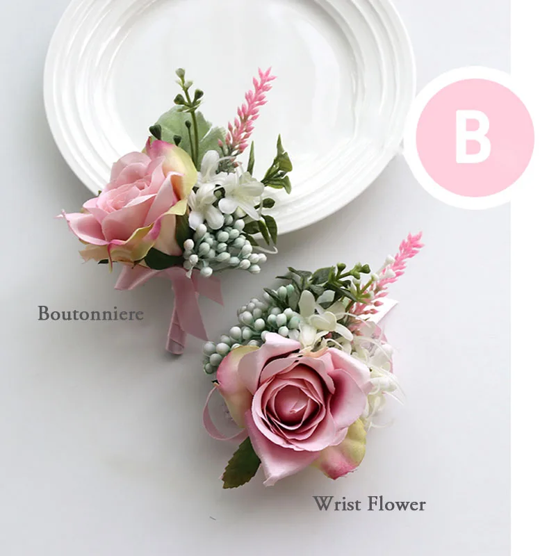 YO CHO Boutonniere 웨딩 코사지와 Boutonnieres 핑크 장미 실크 꽃 Boutonnieres 신랑 남성 결혼 웨딩 액세서리