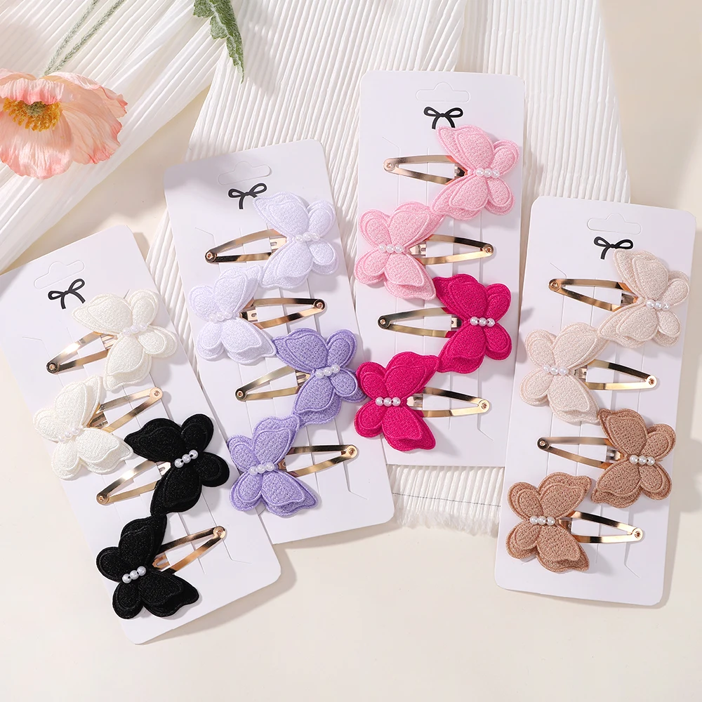 4 개/대 귀여운 아기 소녀 뜨개질 모자를 쓰고 있죠 수제 크로 셰 뜨개질 나비 합금 머리카락 클립 어린이 머리핀 패션 Desgin 모자를 쓰고 있죠