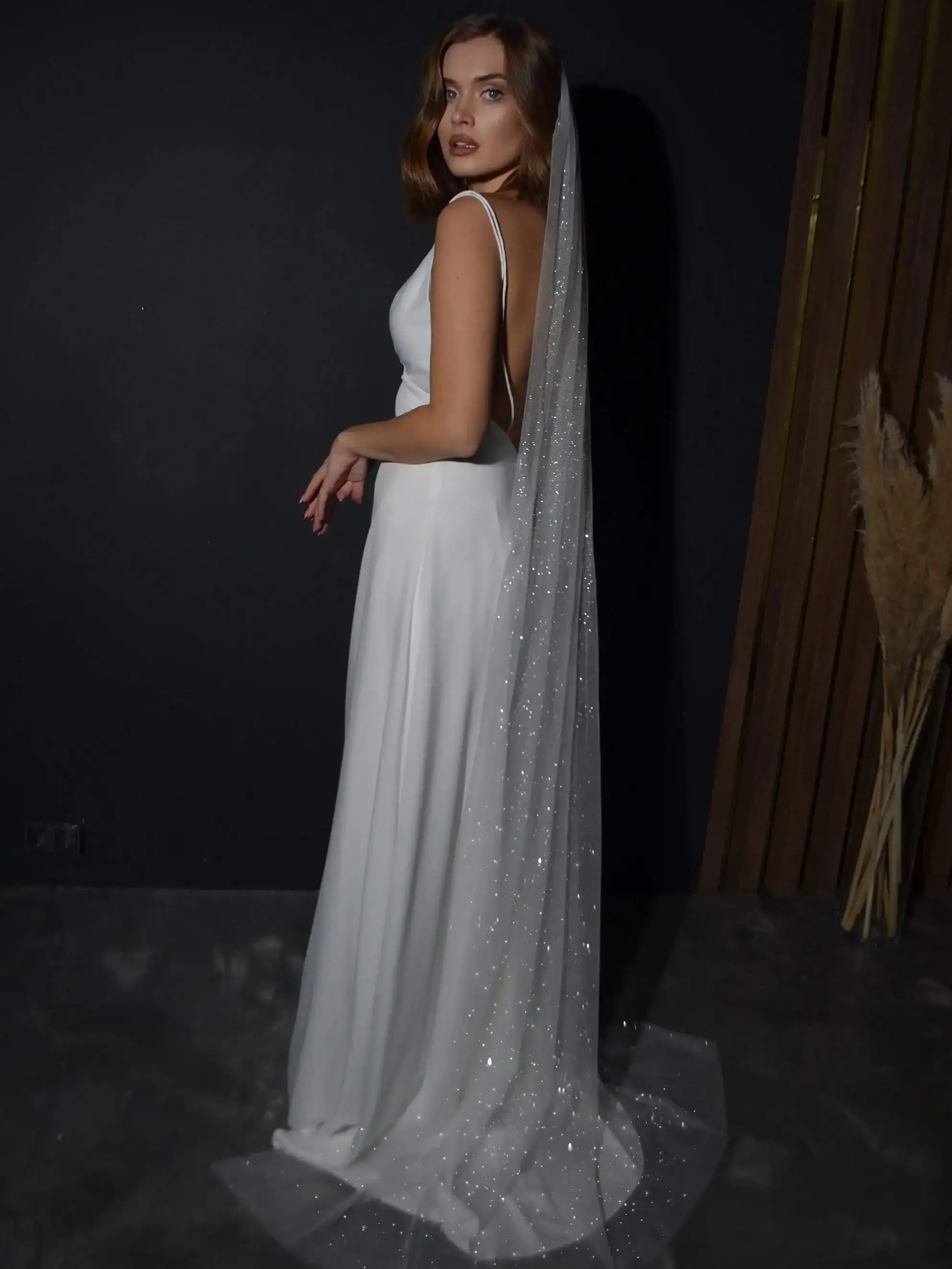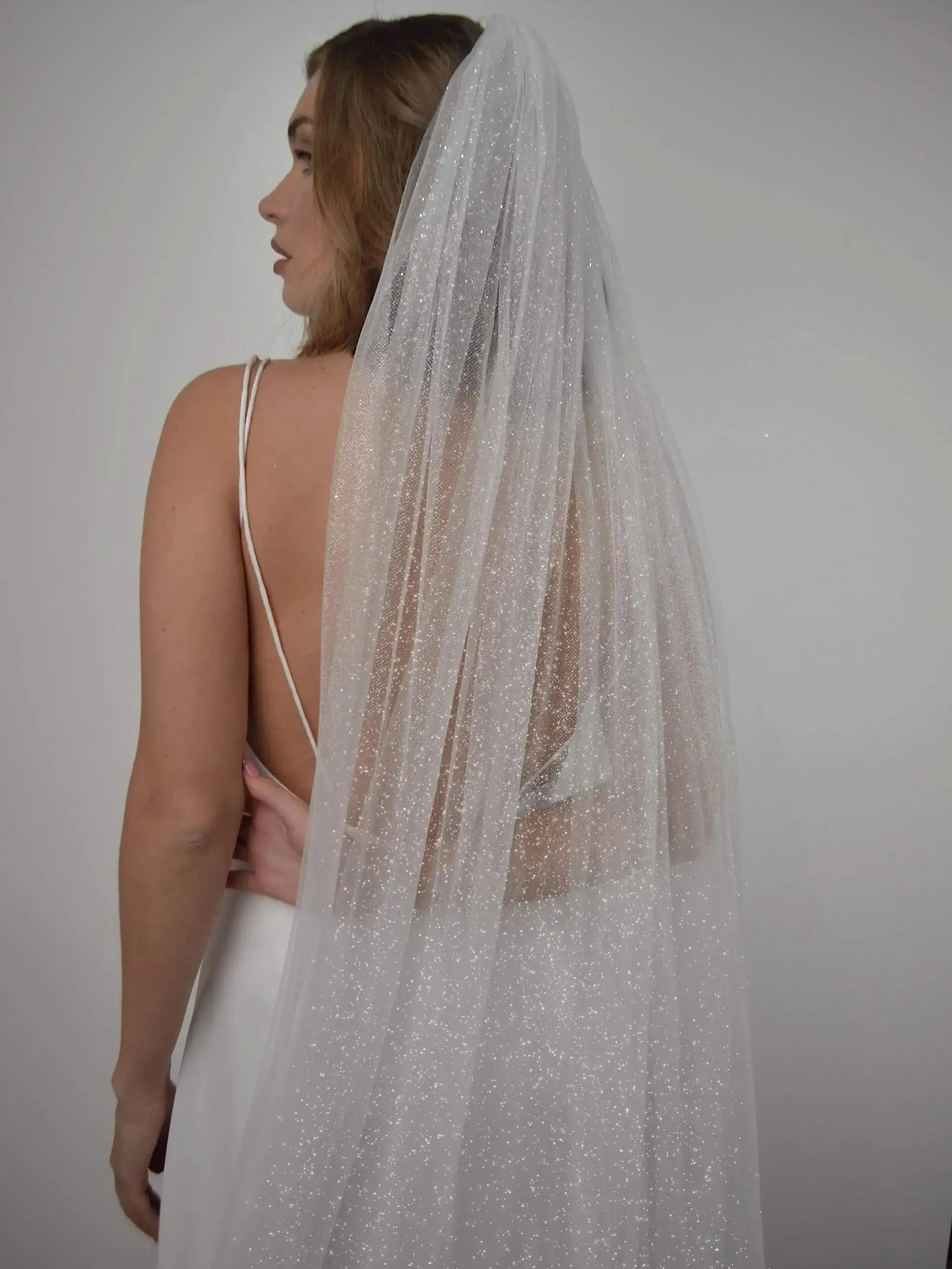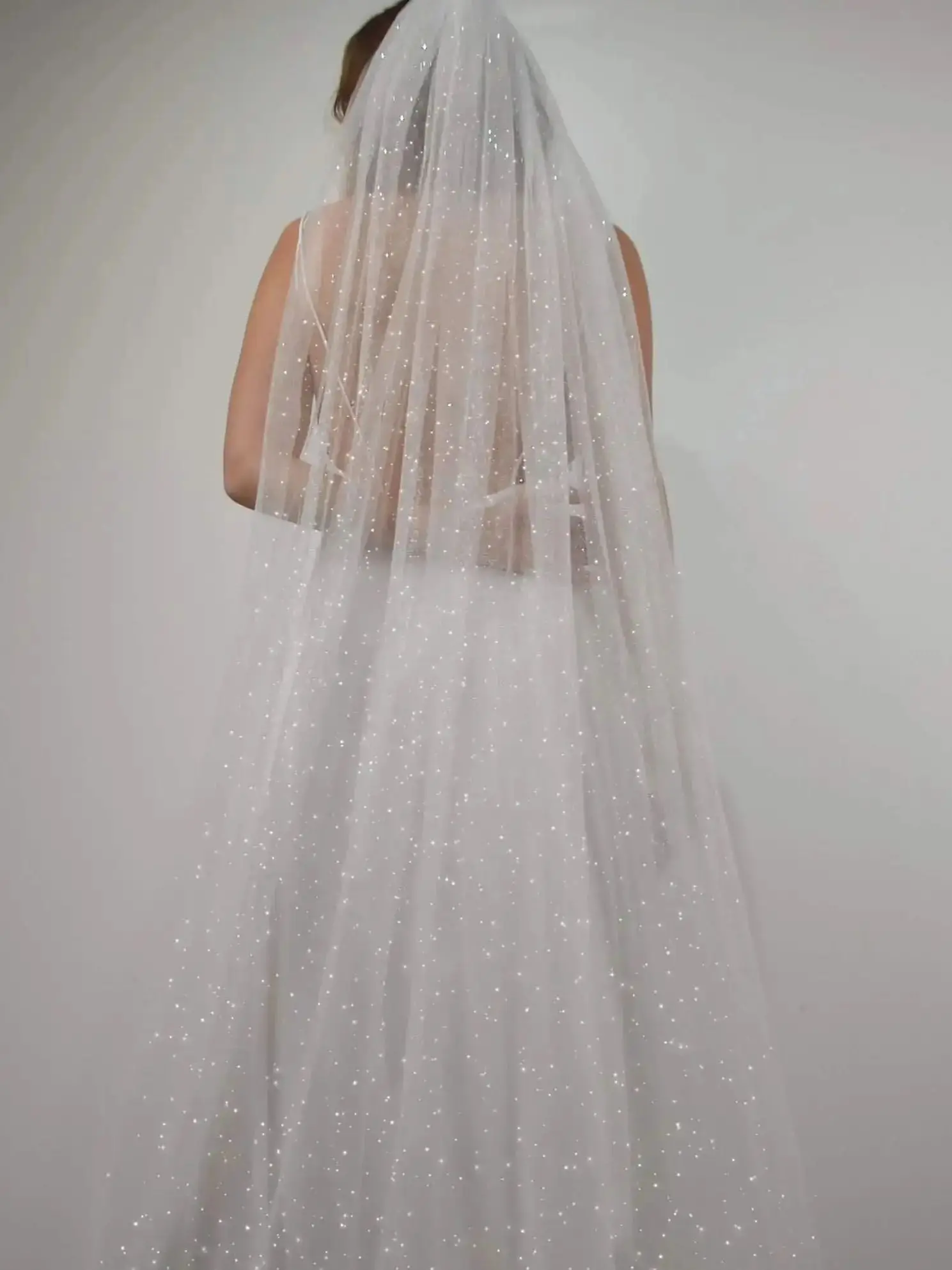 긴 반짝이는 신부 베일 럭셔리 샤인 웨딩 베일 스팽글 대성당 길이의 황금색 톤 빗 V101