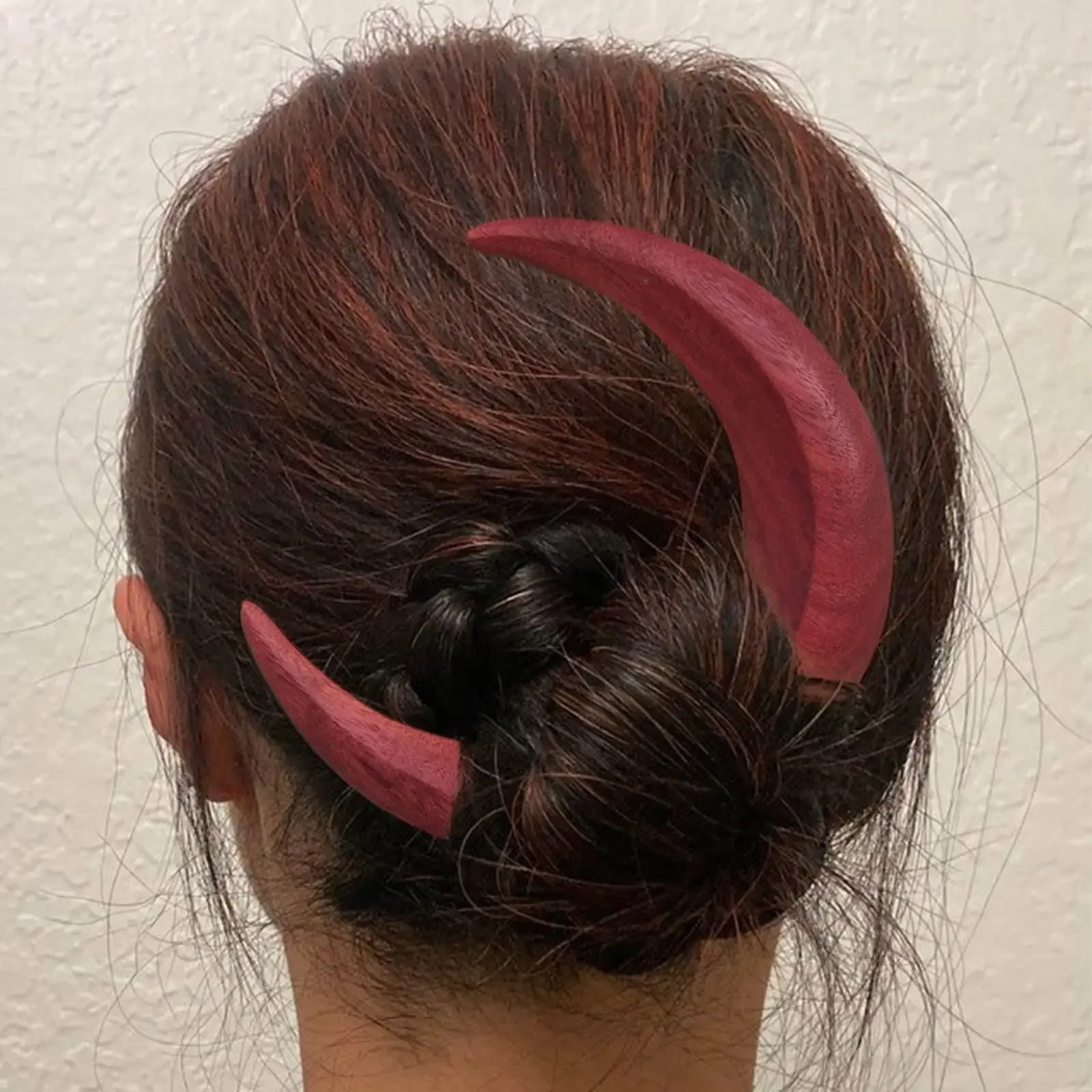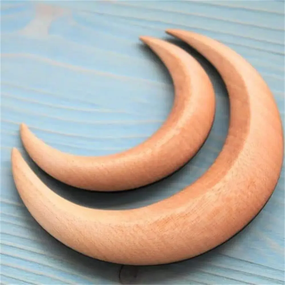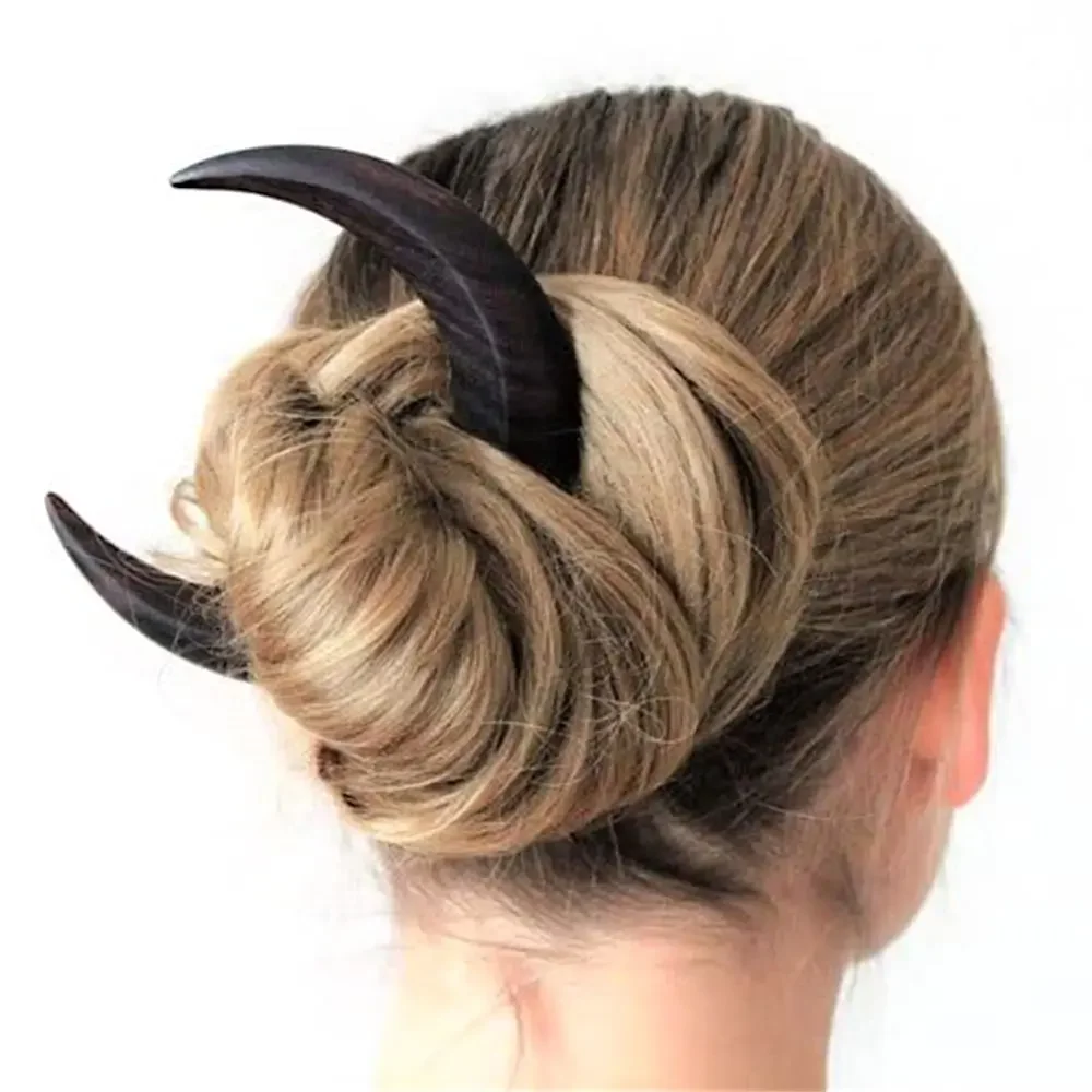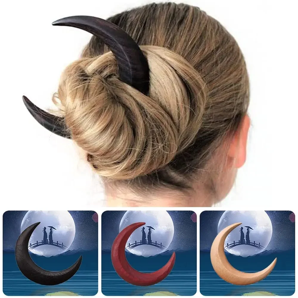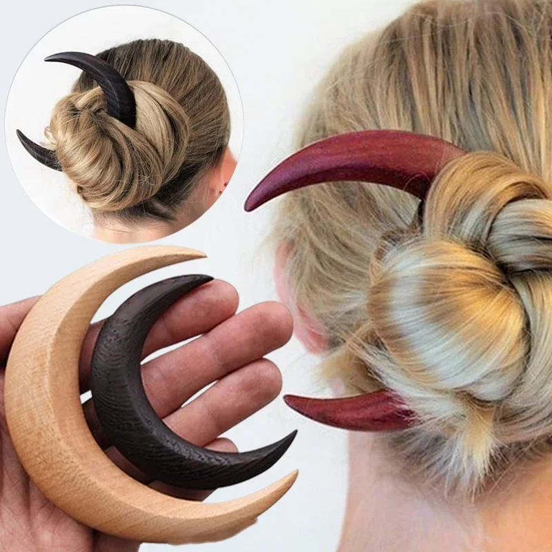 나무 달 수제 비녀 머리핀, 머리 포크 클립 빗, 초승달 모양, 개성 있는 두꺼운 헤어 클립, 스타일링 도구
