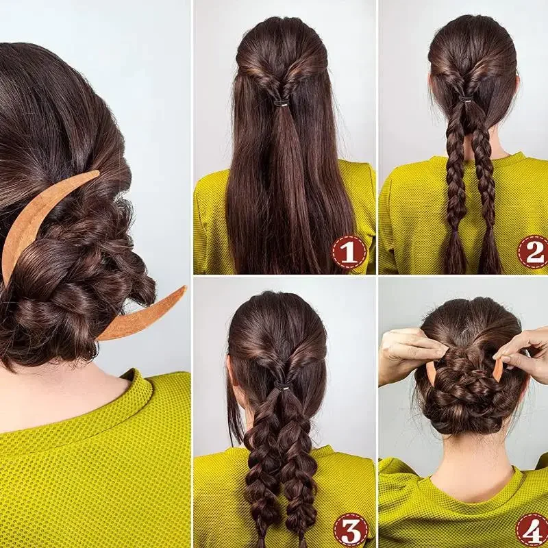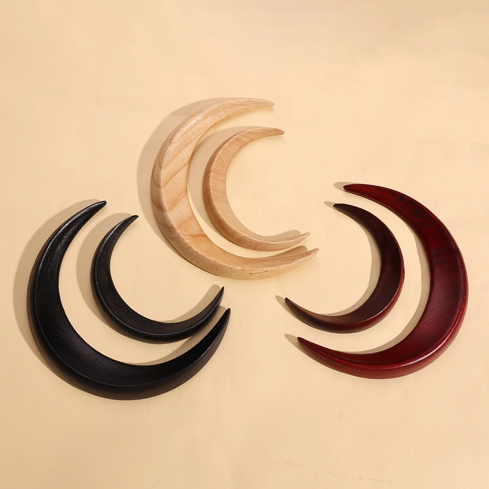 나무 달 수제 비녀 머리핀, 머리 포크 클립 빗, 초승달 모양, 개성 있는 두꺼운 헤어 클립, 스타일링 도구