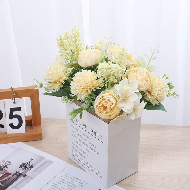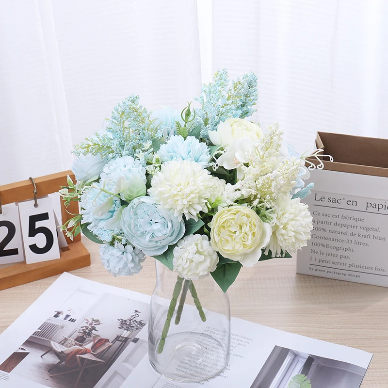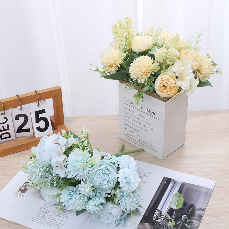 모란 인공 꽃 고품질 실크 장미 가짜 웨딩 파티 홈 테이블 룸 장식 DIY 신부 수국 꽃다발