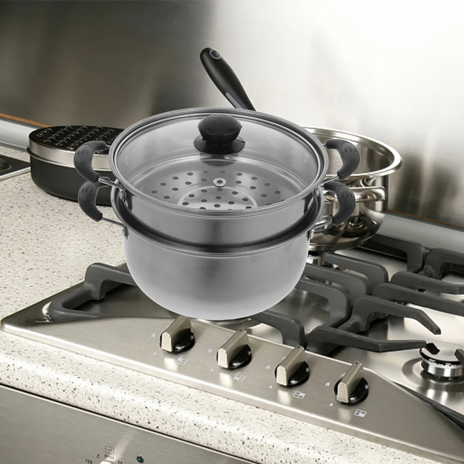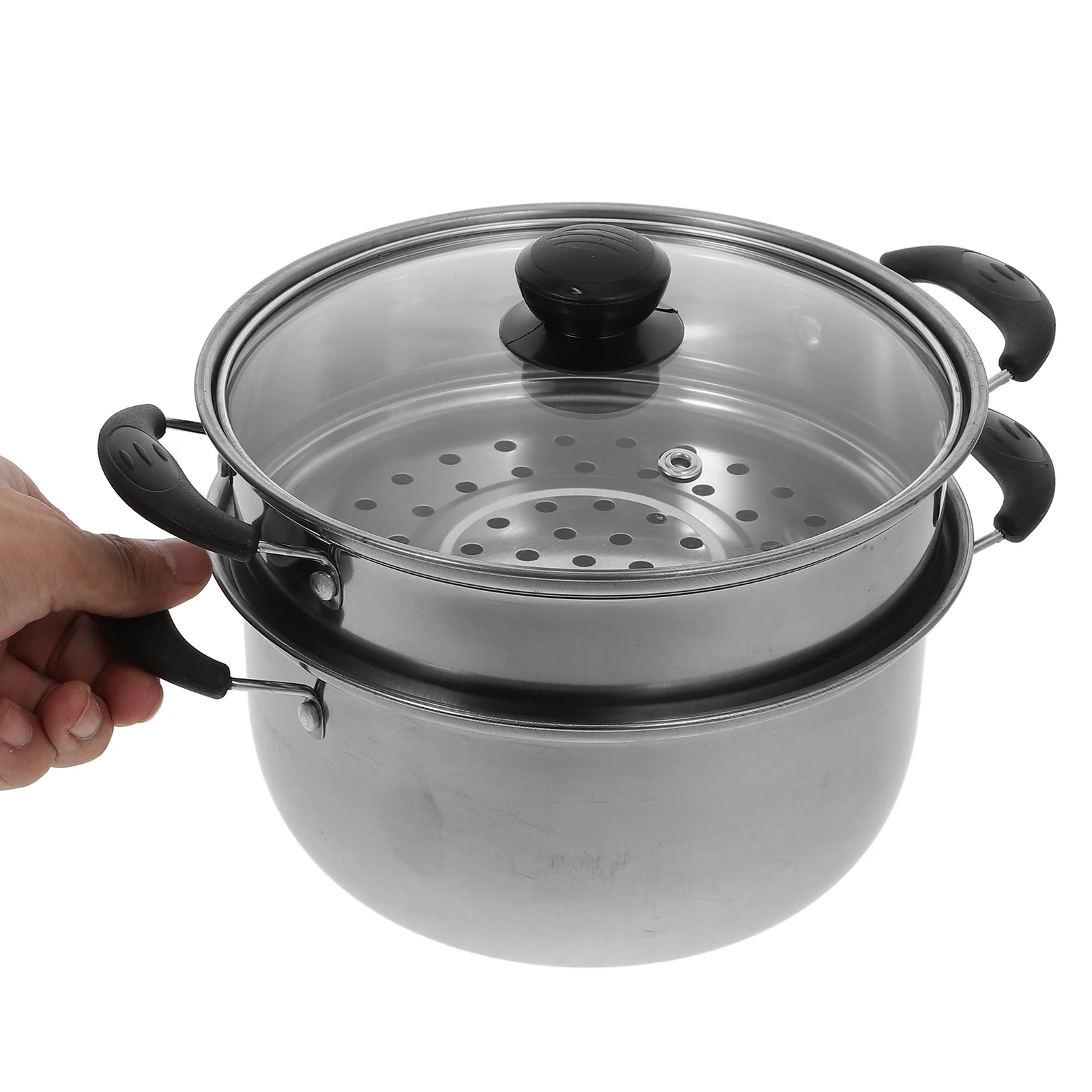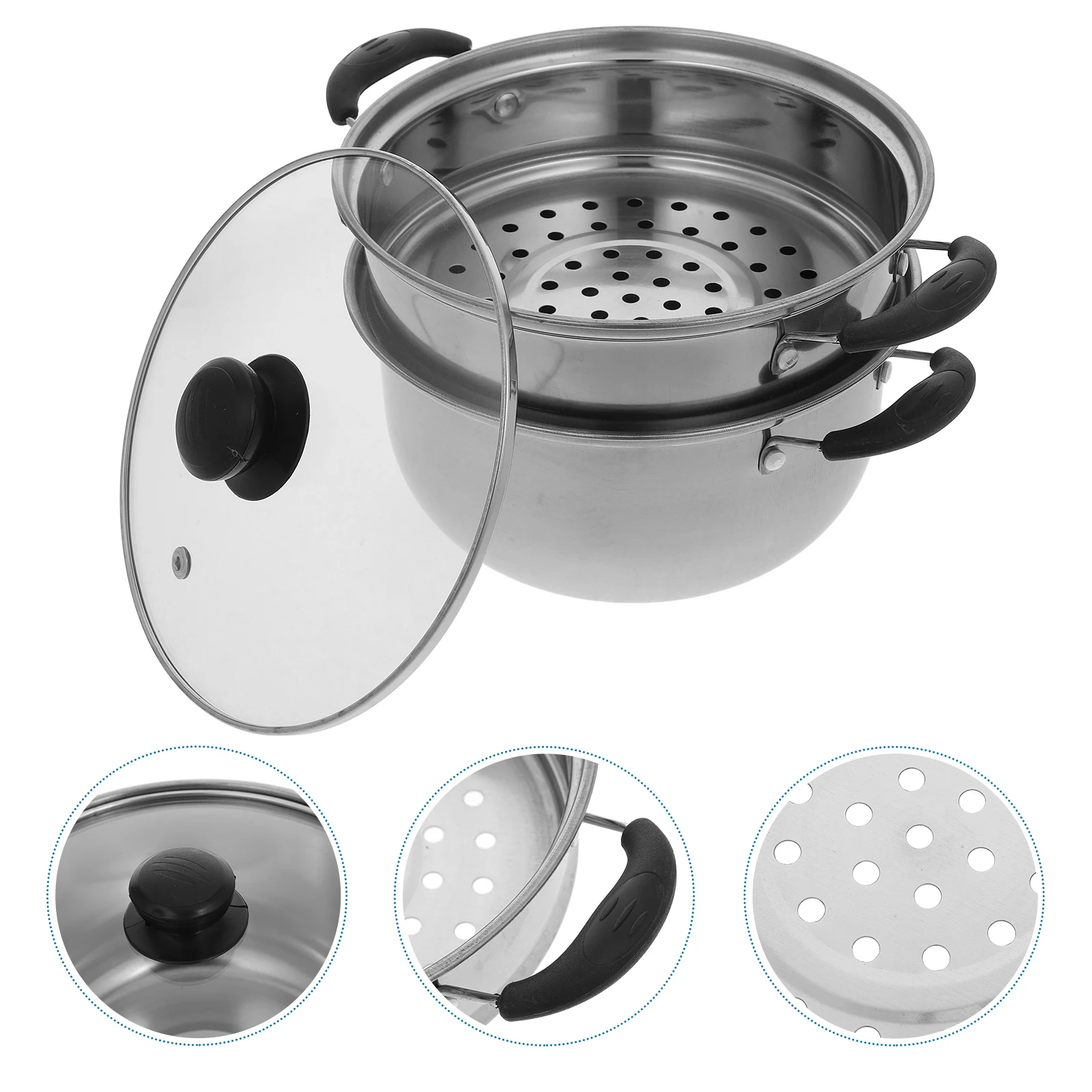스테인레스 스틸 기선 냄비 두꺼운 기선 수프 냄비 비 스틱 스튜 냄비/김이 나는 그리드 20cm 더블 핸들 요리 스팀 냄비