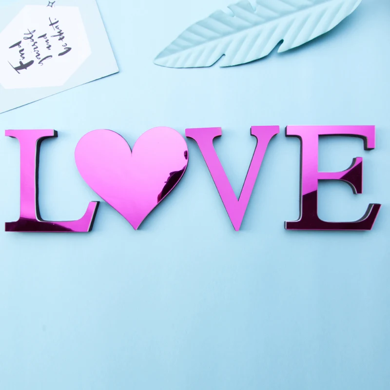아크릴 장미 빨간색 문자 3D 거울 벽 스티커 홈 인테리어 휴일 축하 거실 DIY 껍질 & 스티커 아트 벽화