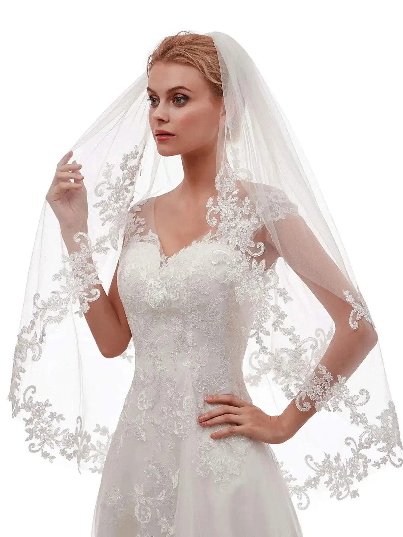 • 베일 가장자리 스타일: 레이스 엣지