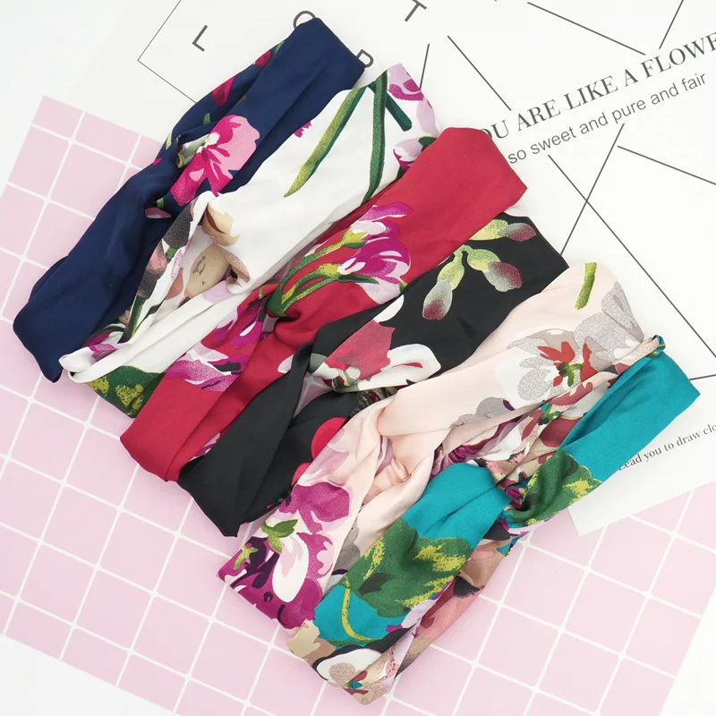 여자 여자 여름 보헤미안 헤어 밴드 인쇄 머리띠 레트로 크로스 터번 붕대 Bandanas HairBands 헤어 액세서리 Headwrap