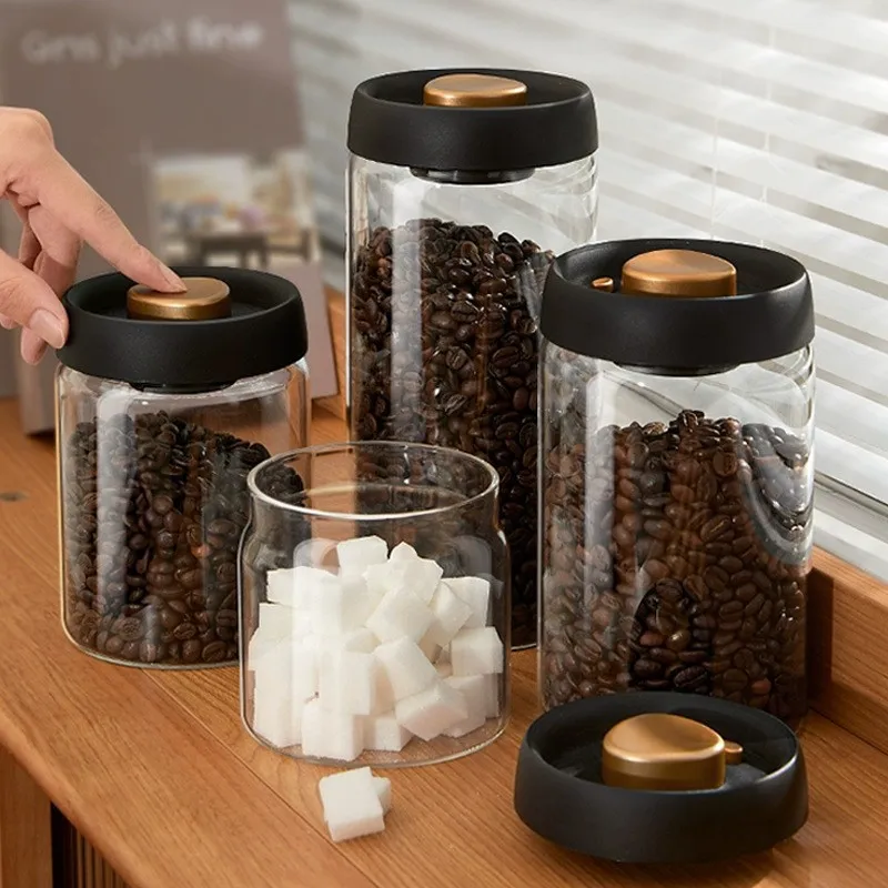진공 밀봉 탱크 커피 콩 보관 유리 병 투명 식품 보관 용기 방습 추출 공기 밀폐 용기