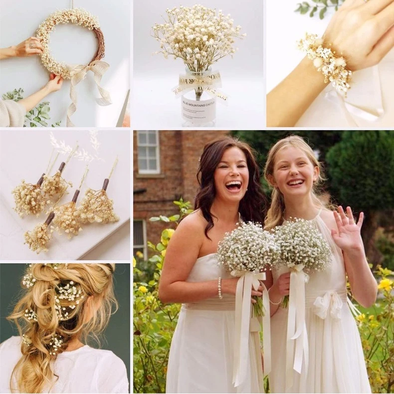 천연 신선한 말린 보존 꽃, Gypsophila Paniculata, 아기의 호흡 꽃다발, 결혼식 장식, 가정 장식을위한 선물