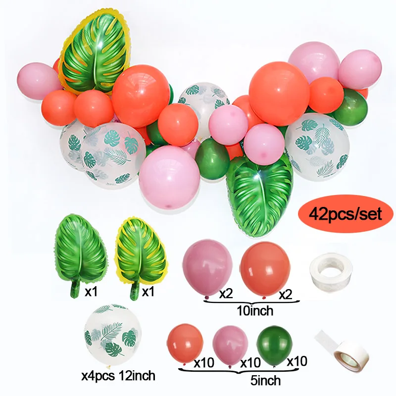 하와이 파티 장식 Ballons 열대 야자 잎 풍선 화환 여름 Luau 테마 생일 파티 웨딩 장식