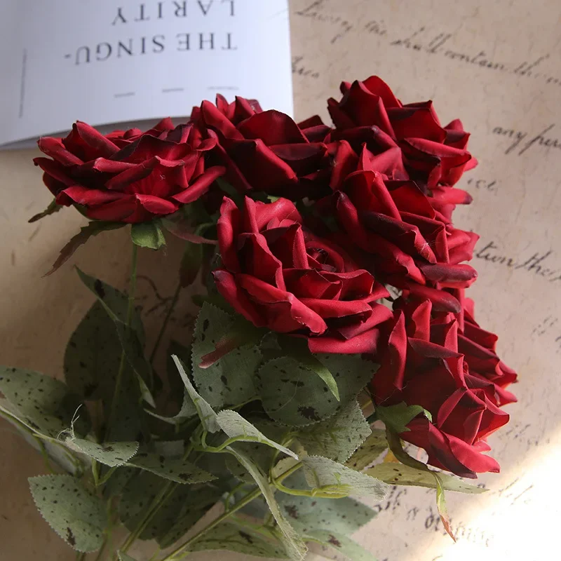 1 꽃다발 9 머리 인공 다이아몬드 장미 웨딩 테이블 화이트 로즈 꽃다발 웅크 리고 장미 인공 꽃 홈 웨딩 장식
