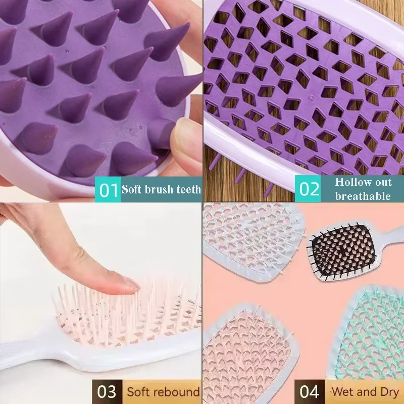 1/2 개 세트 두피 마사지 빗 속이 빈 빗 샴푸 마사지 브러쉬 목욕 헤어 세척 스프레이 병 살롱 미용 도구