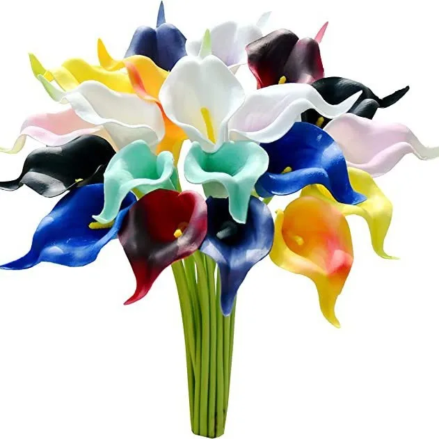 1/5/10/20Pcs 칼라 릴리 가짜 꽃 웨딩 부케 인공 리얼 터치 라텍스 꽃 홈 웨딩 생일 파티 장식