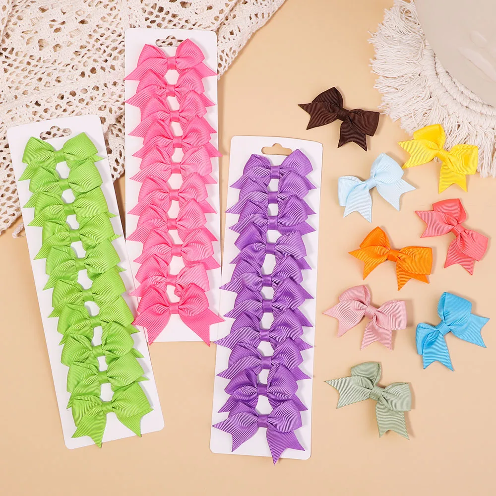 10 개/대 어린이를위한 솔리드 컬러 머리핀 Grosgrain 리본 활 헤어 클립 부티크 수제 모자를 쓰고 있죠 소녀 아기 헤어 액세서리