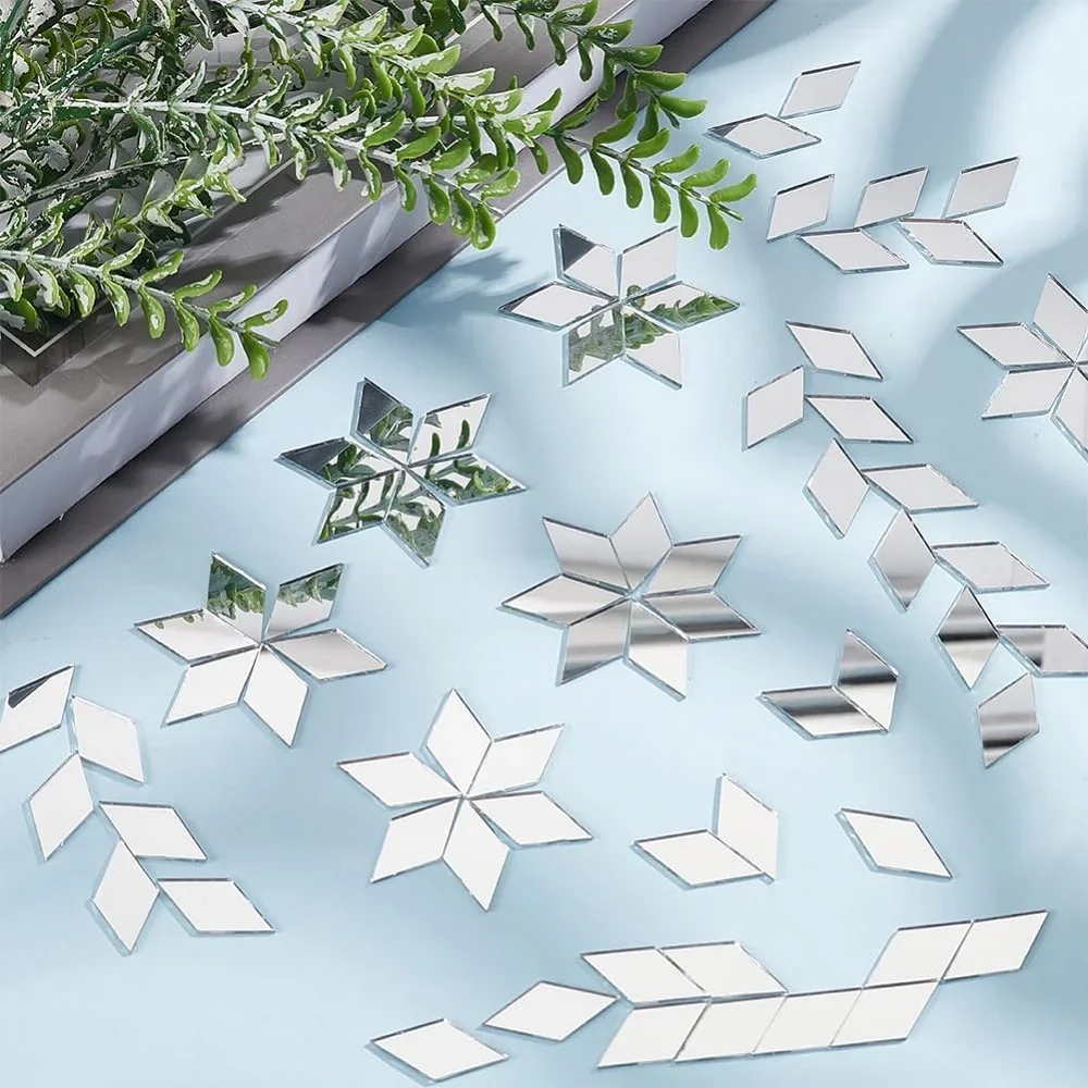 100pcs 아크릴 다이아몬드 모양 거울 스티커 모자이크 타일 대량 자기 접착제 DIY 공예 미술 거울 벽 문 홈 장식