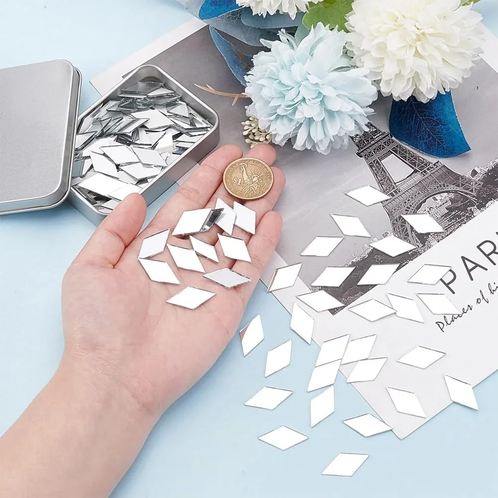 100pcs 아크릴 다이아몬드 모양 거울 스티커 모자이크 타일 대량 자체 접착 DIY 공예 미술 거울 벽 문 홈 장식