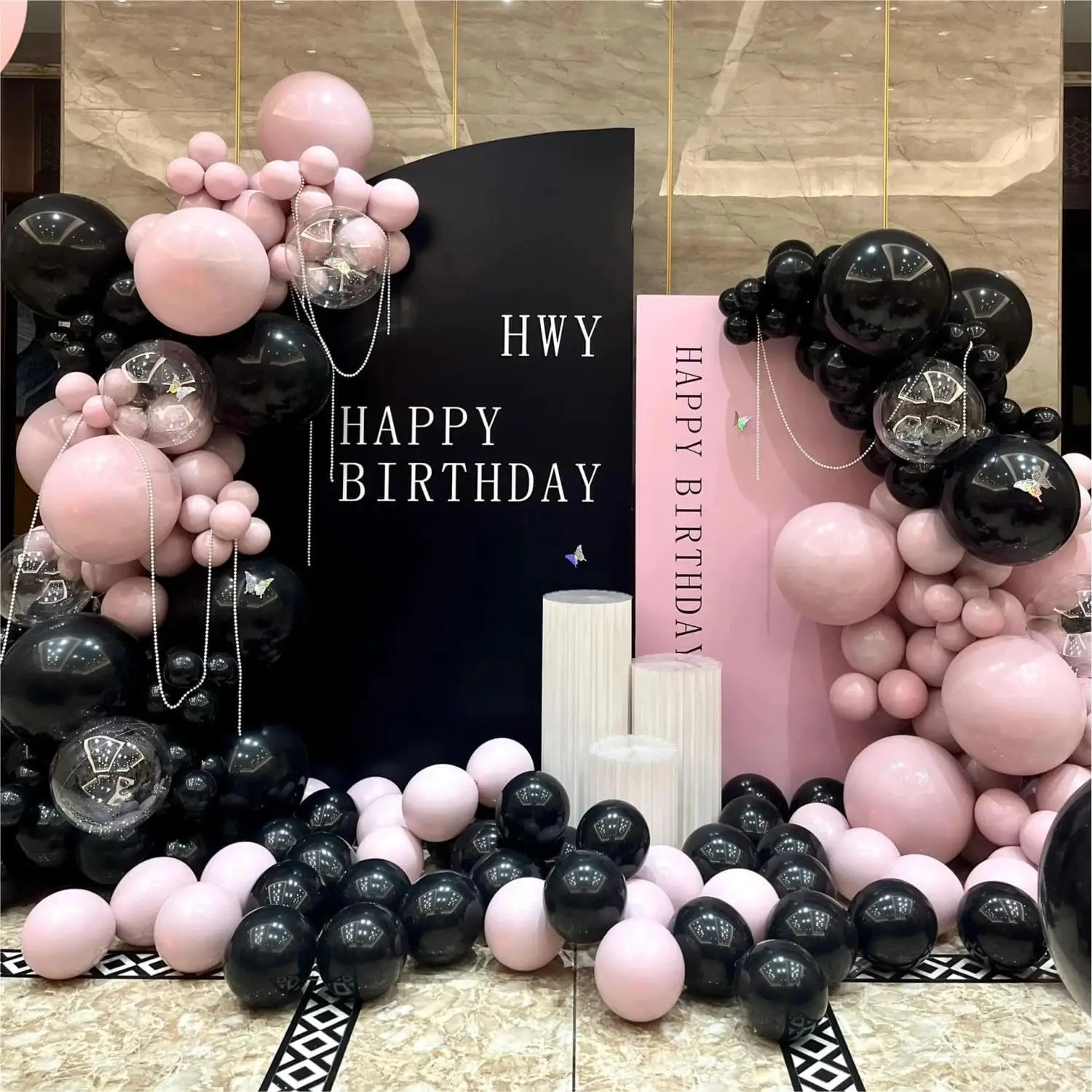 107Pcs 핑크와 블랙 풍선 화환 아치 키트 발렌타인 데이 웨딩 아기 생일 파티 장식을위한 투명 풍선