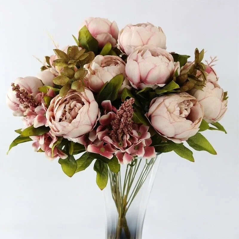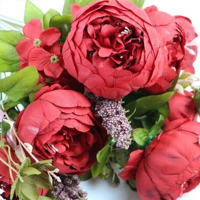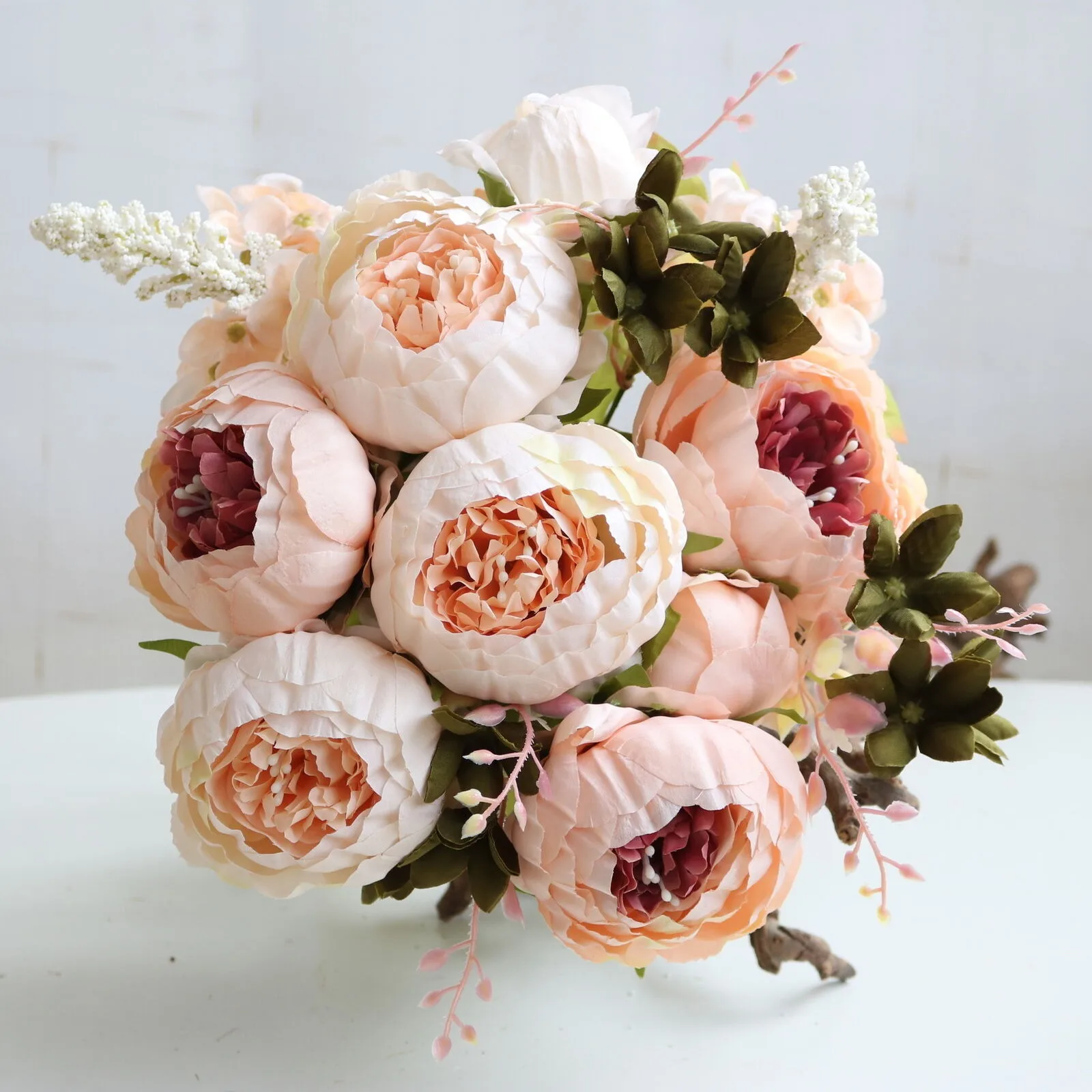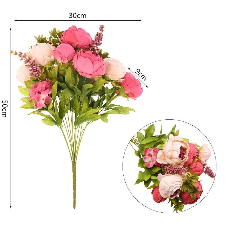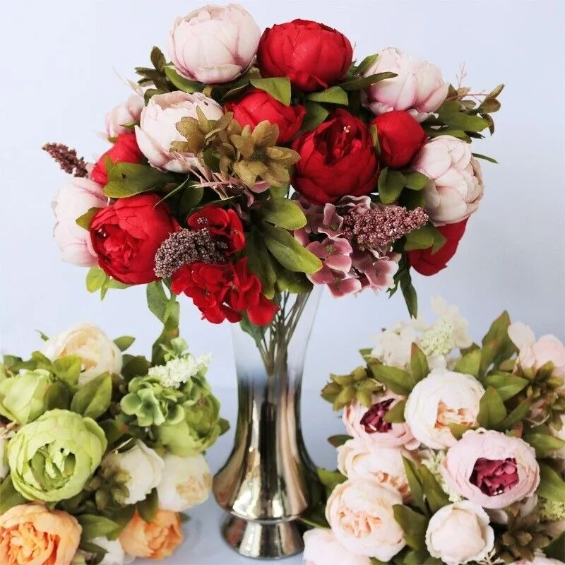 13 머리 실크 모란 인공 가짜 꽃 웨딩 부케 홈 인테리어 장식품 파티 장식