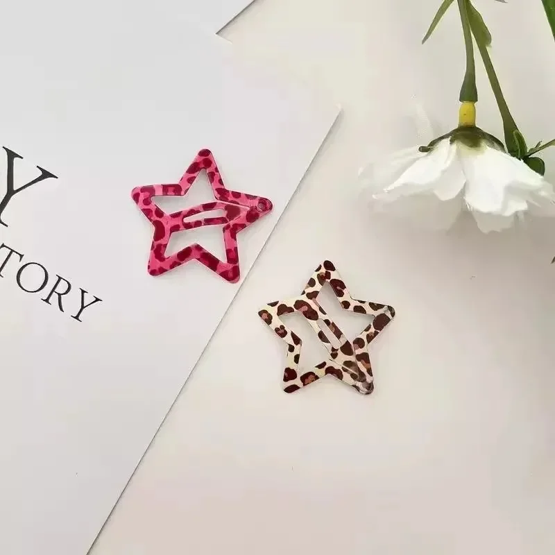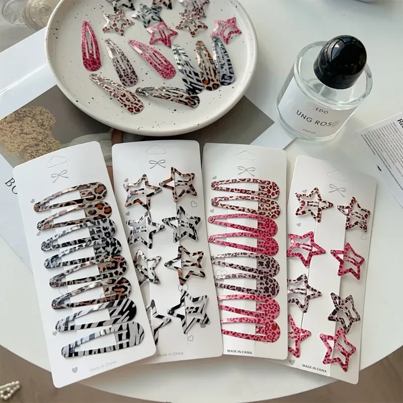 2025 여성용 레트로 레오파드 프린트 펜타그램 BB 헤어 클립 지브라 앞머리 프린트 물방울 모양 속이 빈 헤어핀 측면 프린트 헤어 클립
