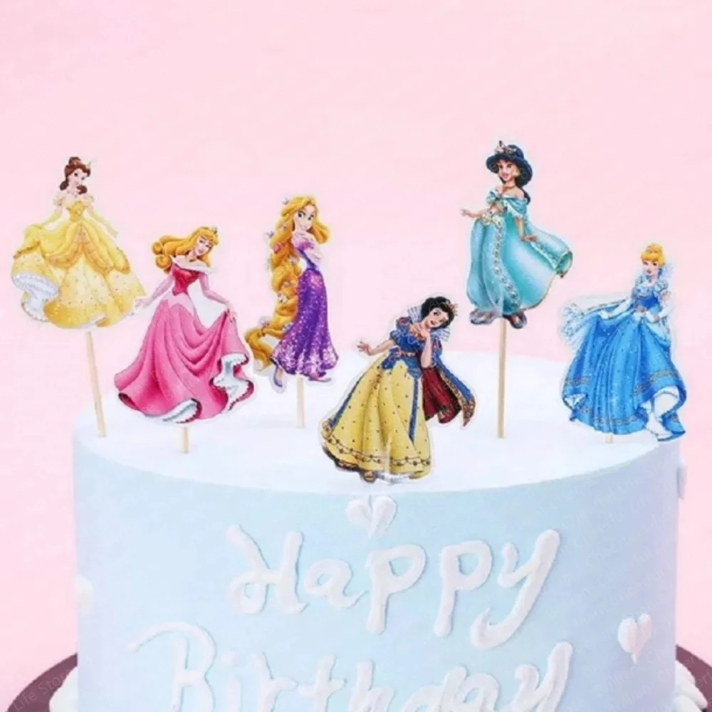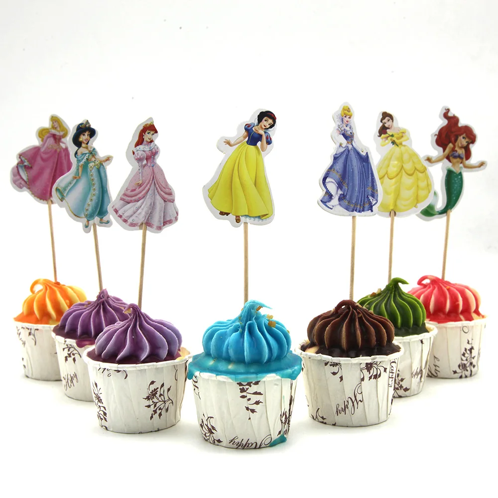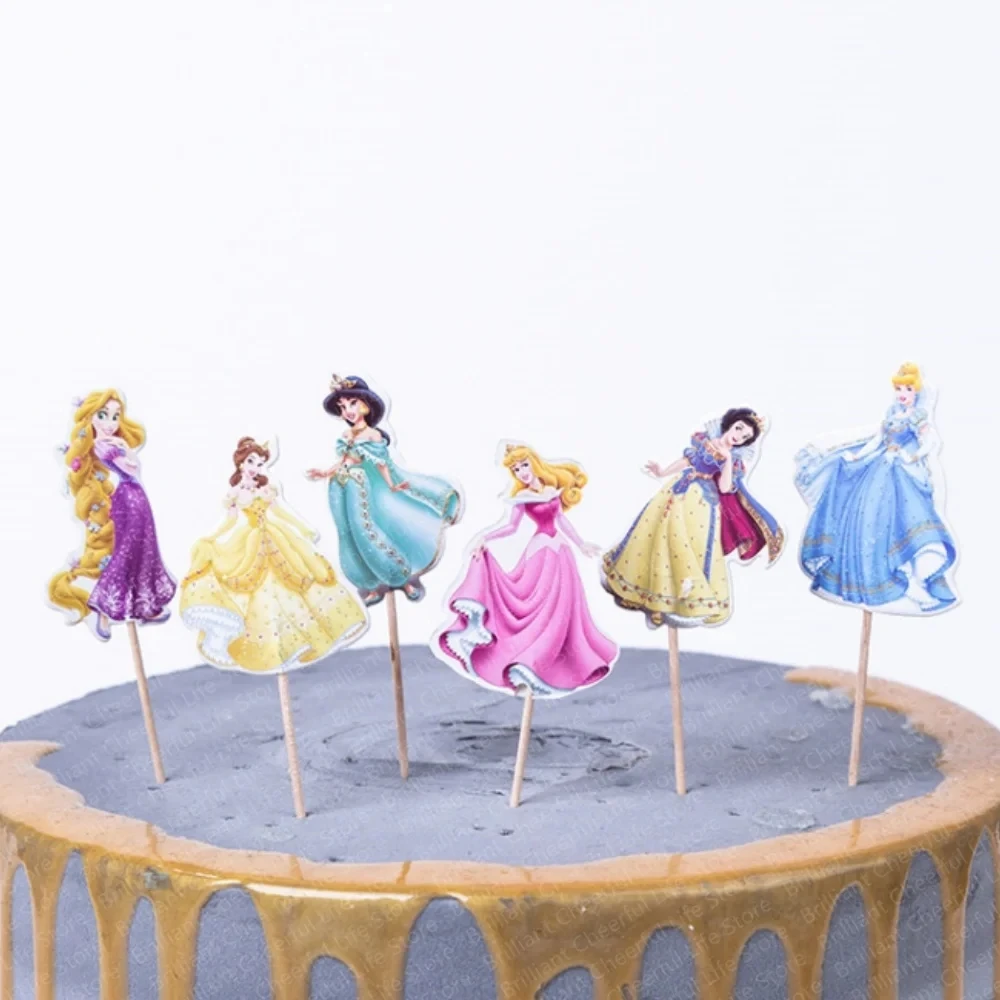 24pc 디즈니 공주 케이크 토퍼 소녀는 아이들을위한 파티 케이크 장식을 선호합니다 생일 축하 파티 케이크 용품 공주 컵케익
