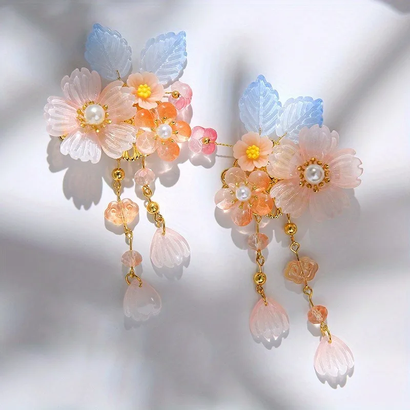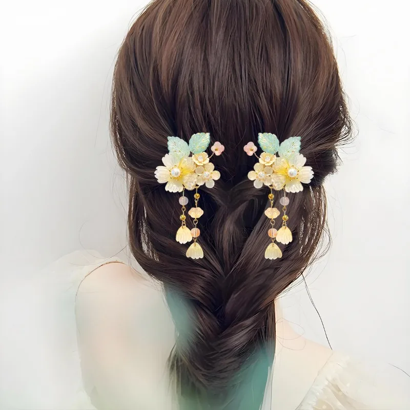2pcs 중국 여성 헤어 클립 꽃 진주 머리핀 빈티지 Hanfu 장식 헤어핀 레트로 웨딩 헤드 피스 헤어 쥬얼리 머리 장식