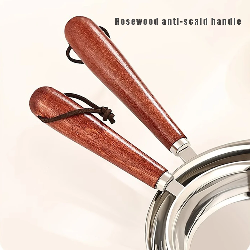 나무 손잡이가 쏟아진 스테인레스 스틸 오일 포트 12cml/16cm 미니 수프 우유 포트 화상 방지 주방 도구 요리 액세서리